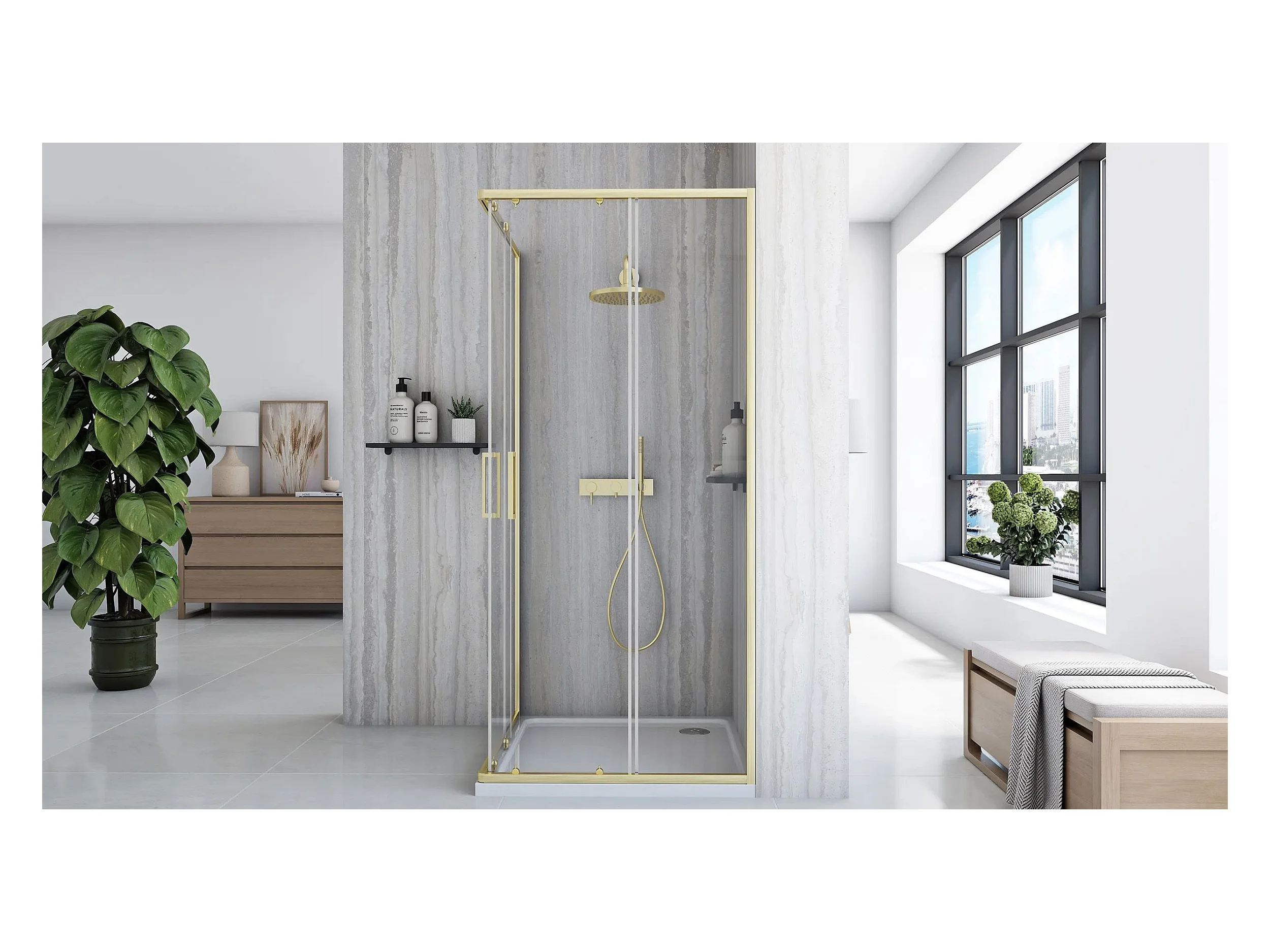 Cabine De Douche Rea City 80X80 Brush Gold + Receveur De Douche Savoy White