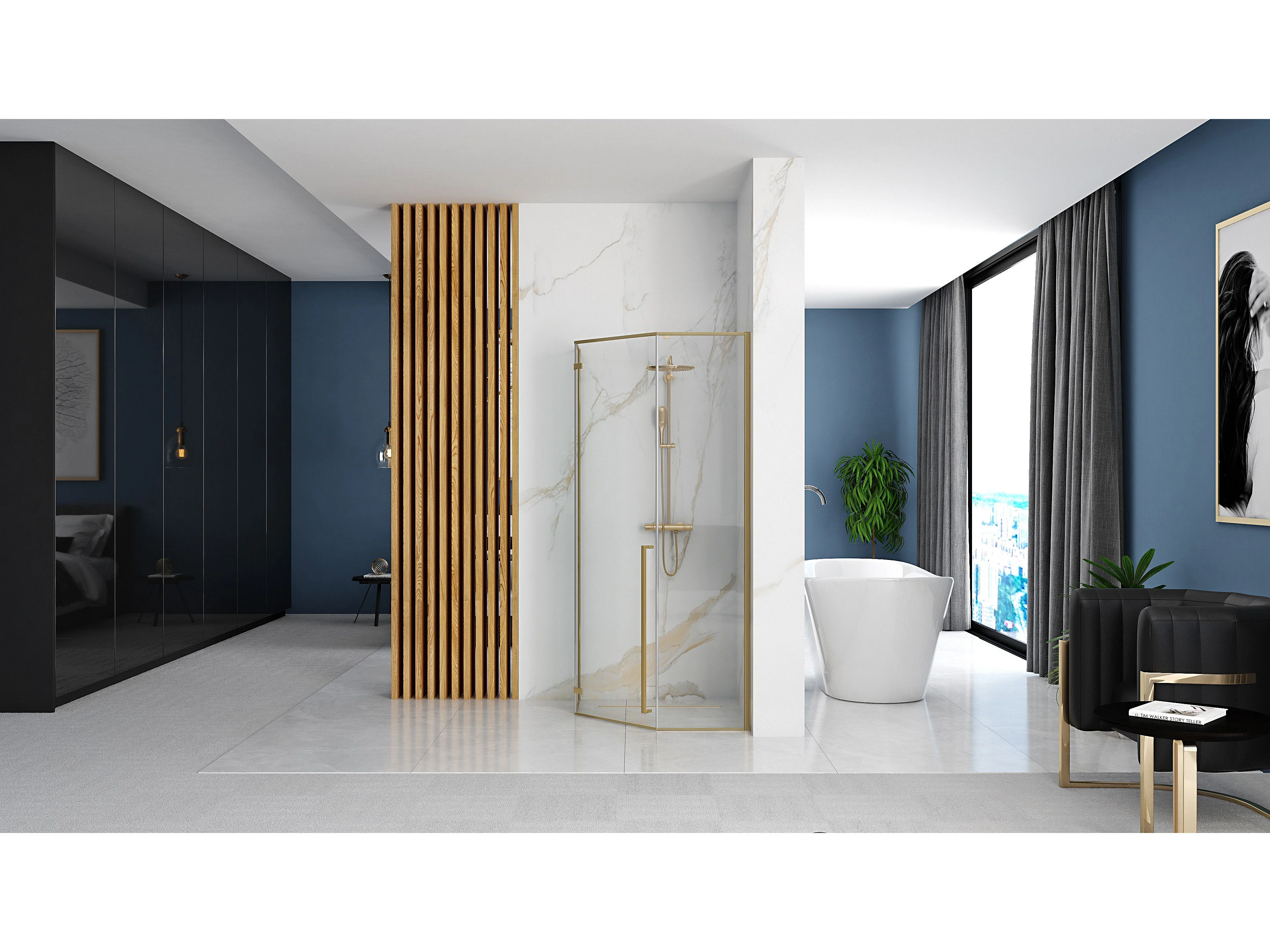 Cabine De Douche Rea Diamond 90X90 Brush Gold + Receveur De Douche Savoy White