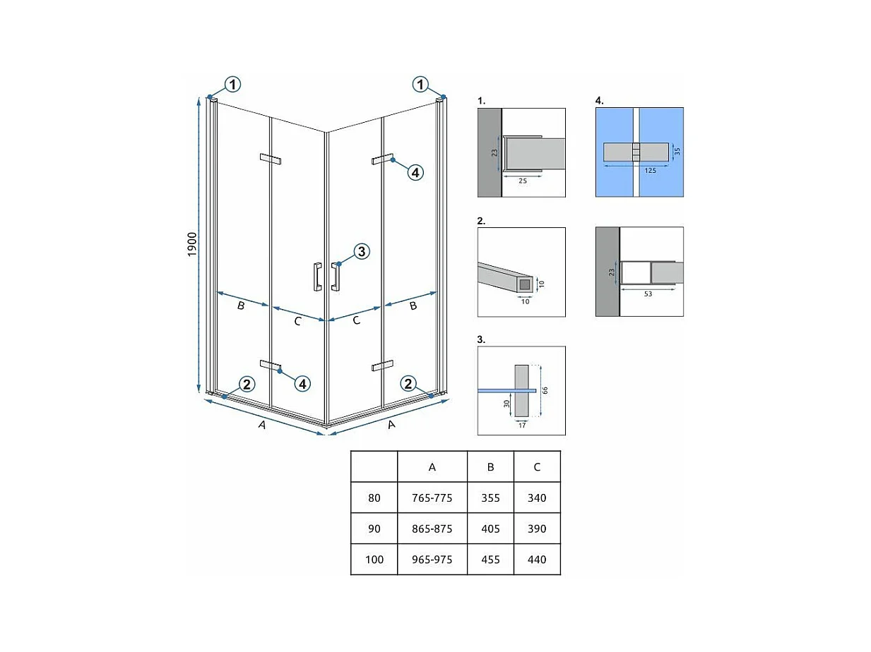 Cabine De Douche Rea Molier Double 80X80 Chrome