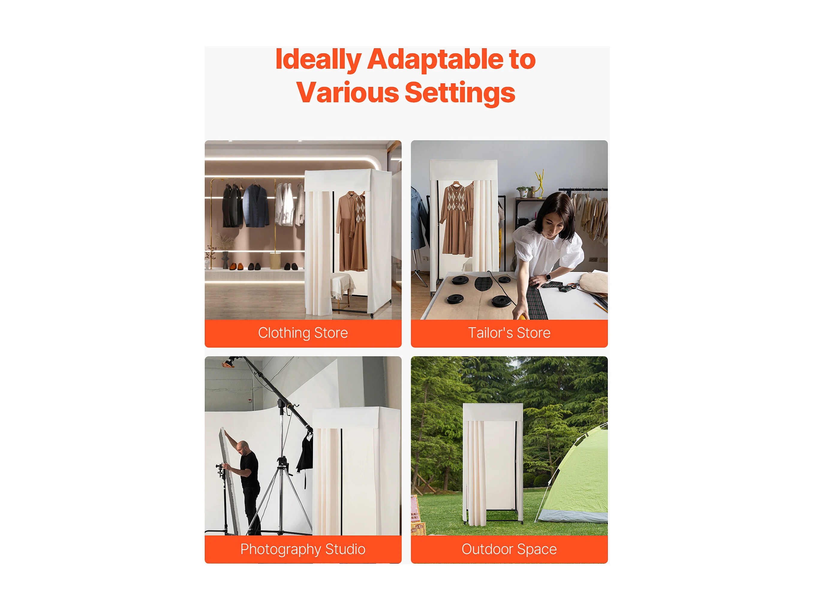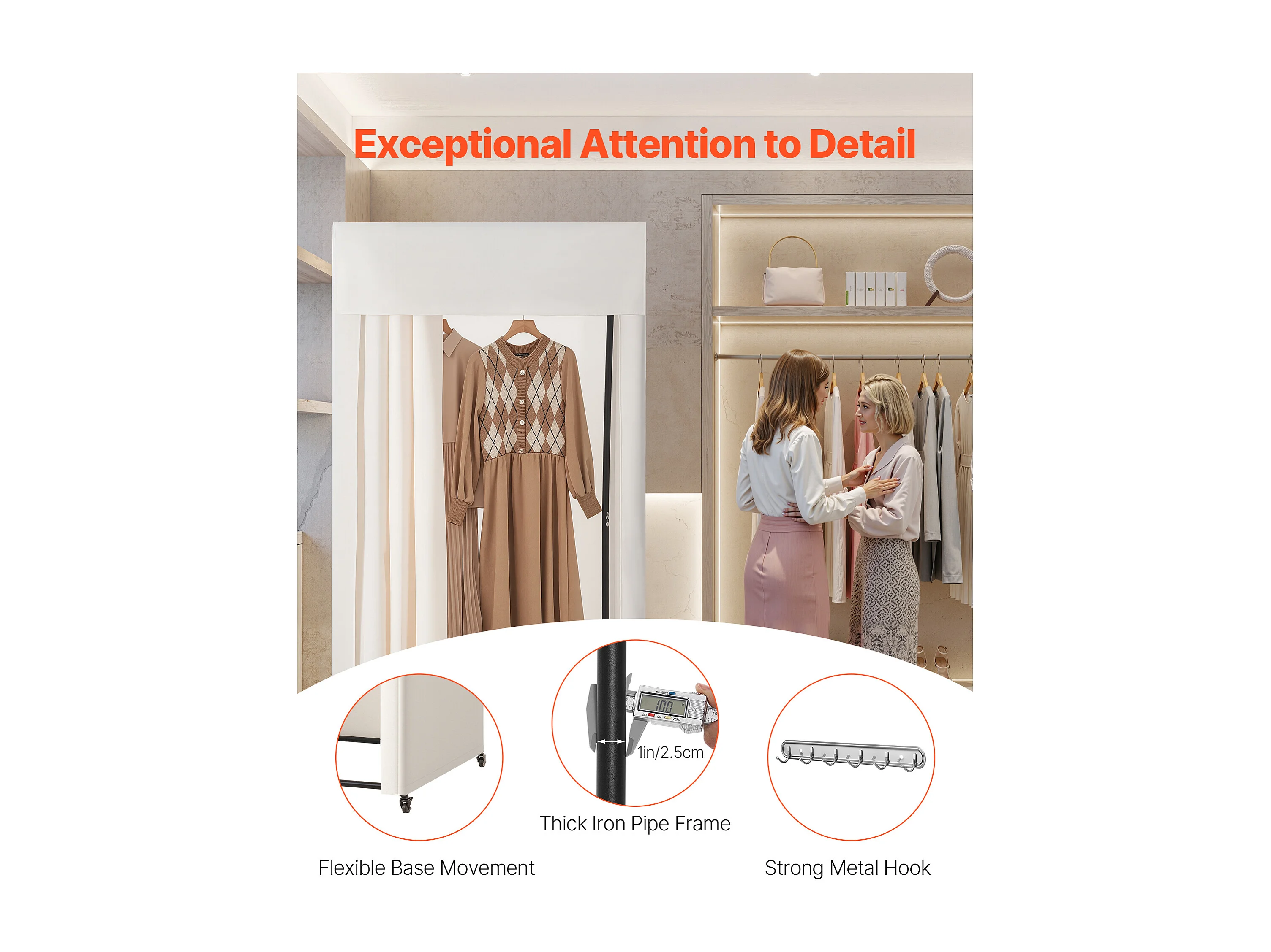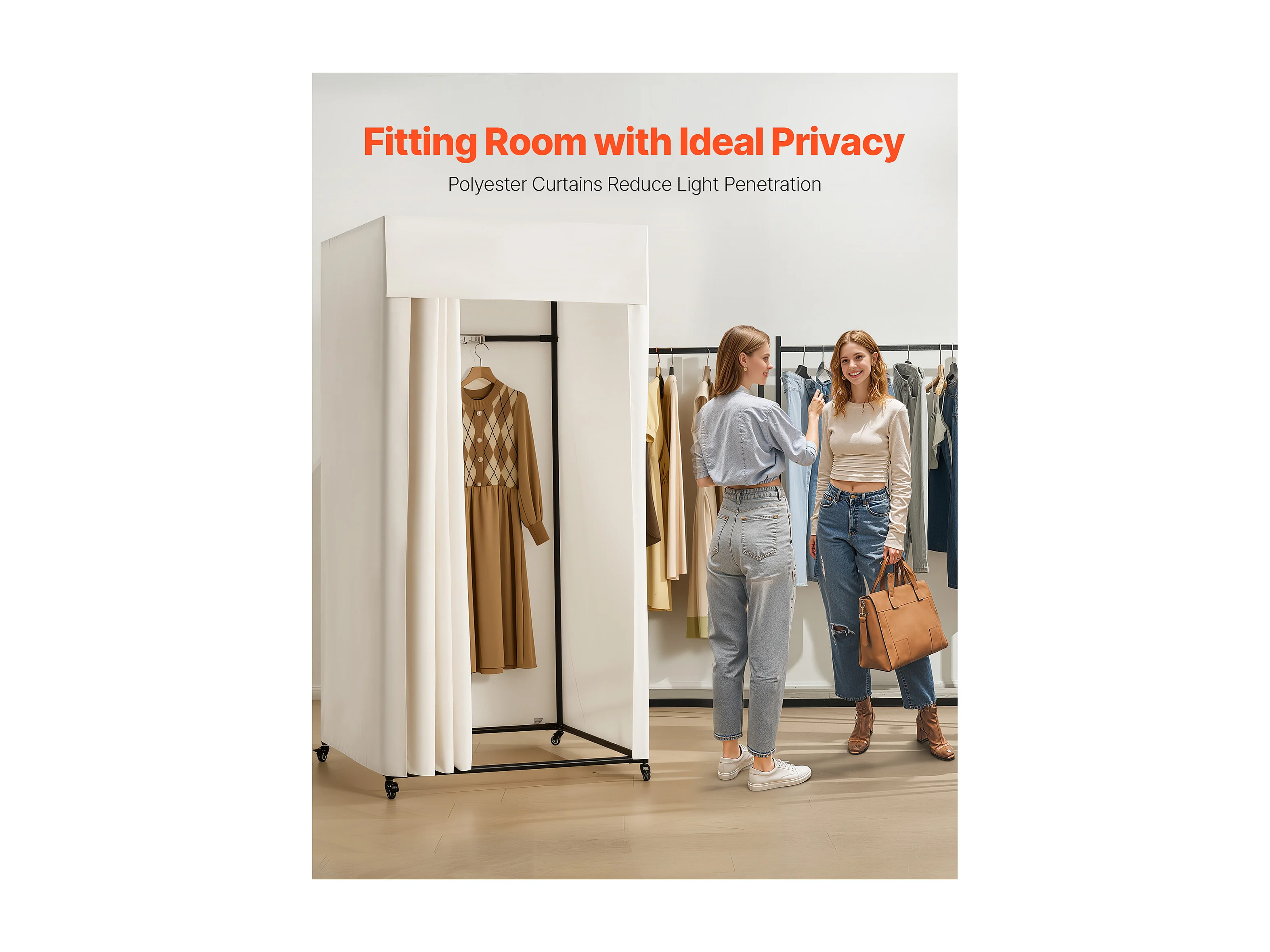 Cabine d'Essayage SucceBuy, 99x99x204,5 cm, Vestiaire Portable Mobile avec Rideaux Épais et Crochet, Espace Privé pour Magasin, Boutique, Beige