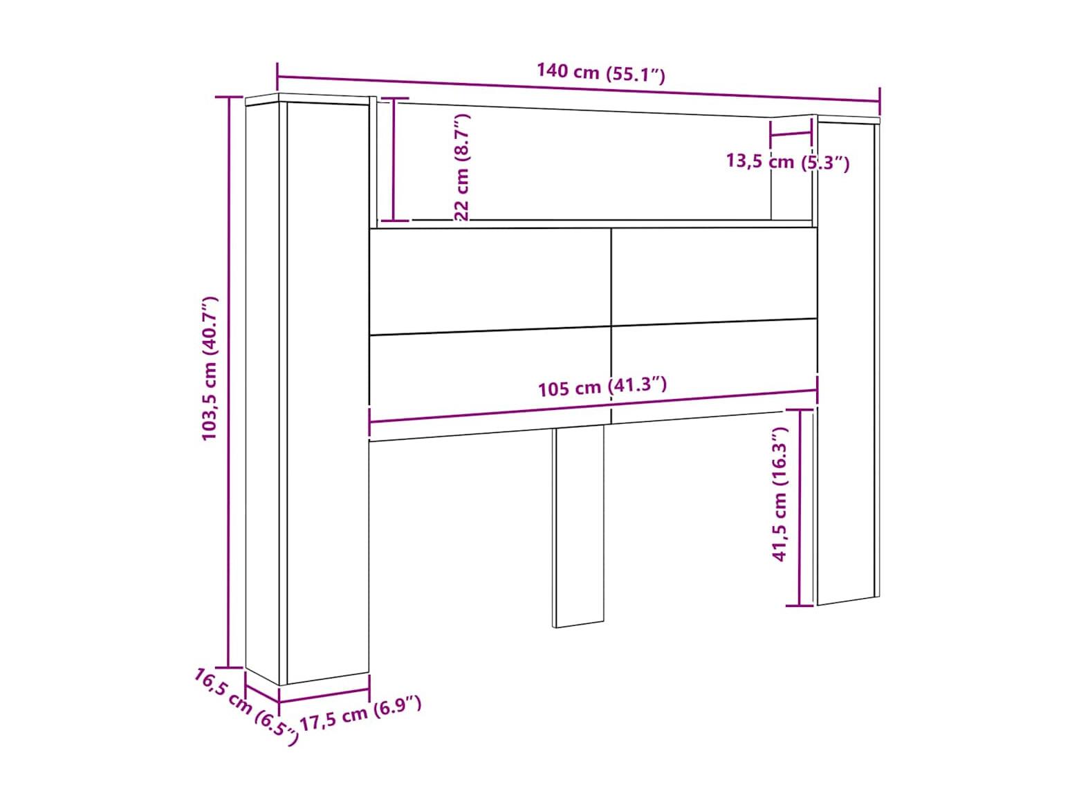 Tête de Lit avec rangement | Armoire de tête de lit avec LED chêne sonoma 140x17x102 cm