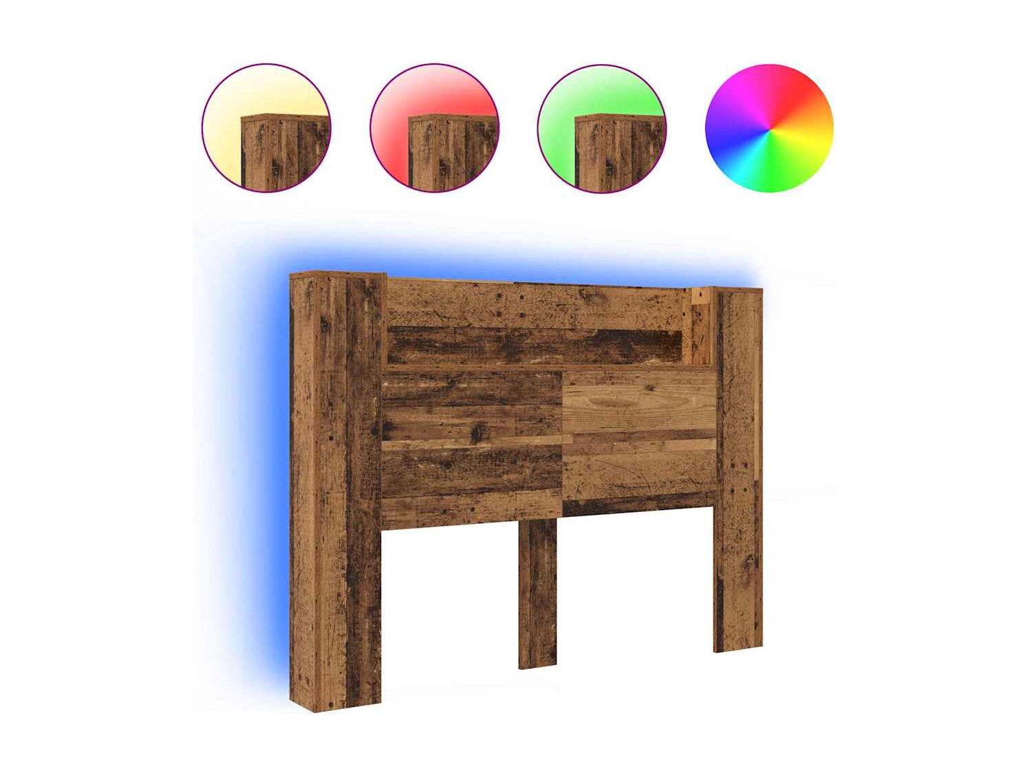 Cabinet de Tête de Lit | Commode de tête de lit avec LED Bois ancien 120 x 17 x 102 cm