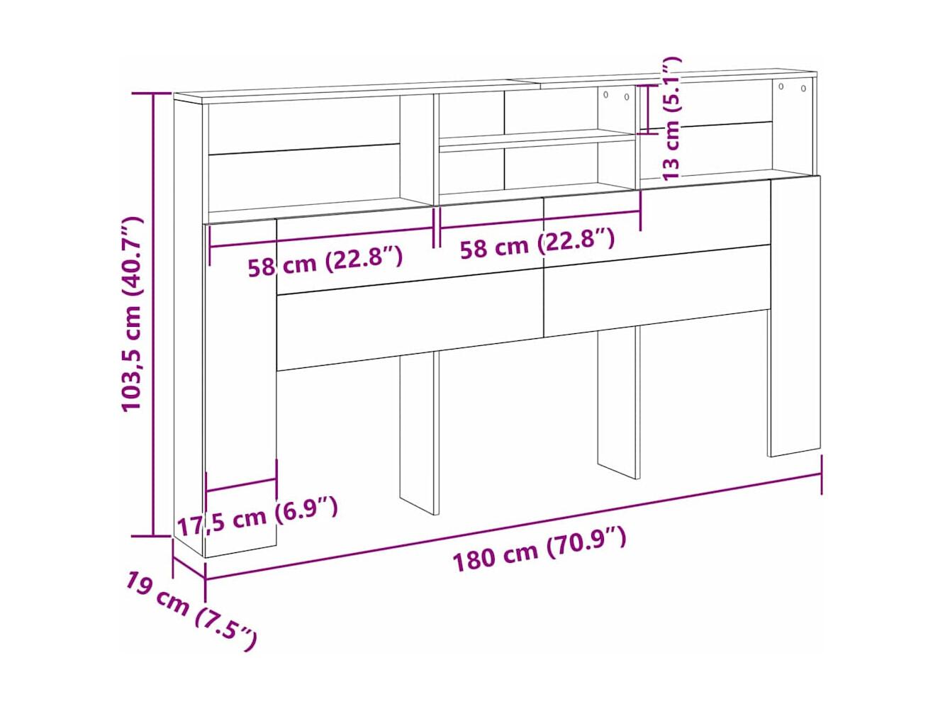 • Taille de la tête de lit: 180 x 19 x 103.5 cm (W x D x H)