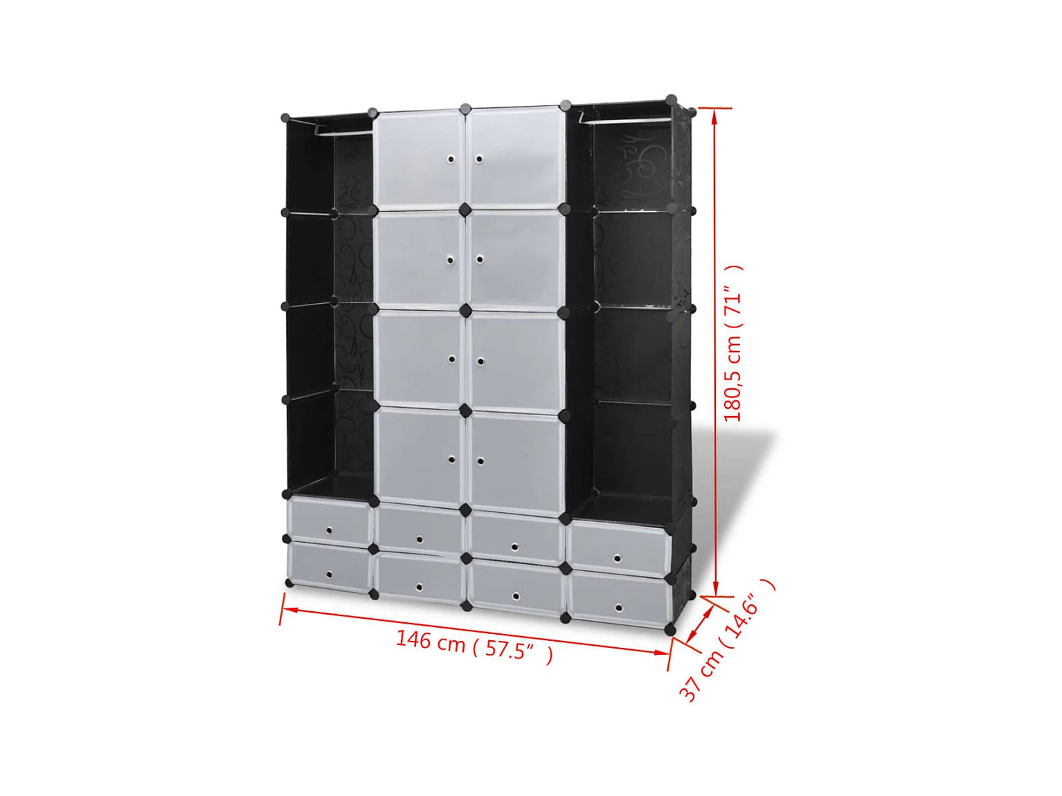 Armoire modulaire 18 compartiments Noir et blanc 37x146x180,5cm FR14610
