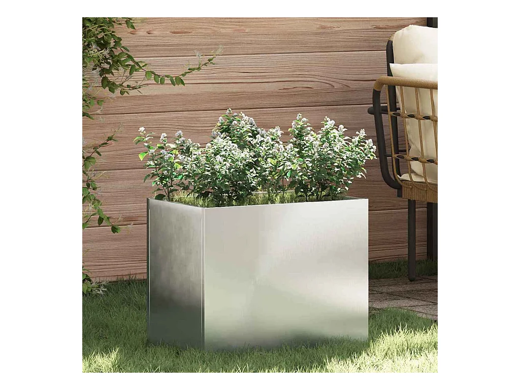 Cache-pot de jardin | Jardinière Argent 50 x 32 x 40 cm Acier inoxydable