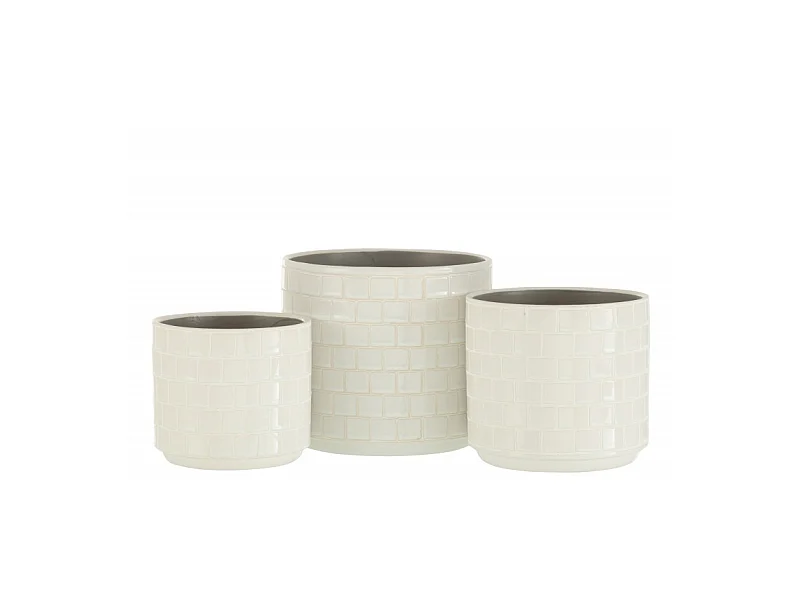 Lot de 3 Cache-Pots Céramique "Roda" 50cm Blanc