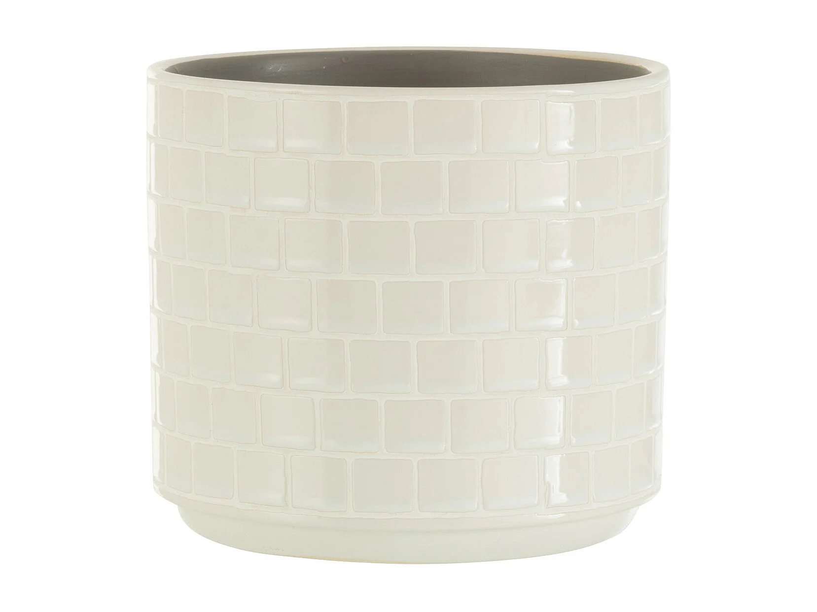Cache-Pot Déco en Ciment "Damier" 20cm Blanc