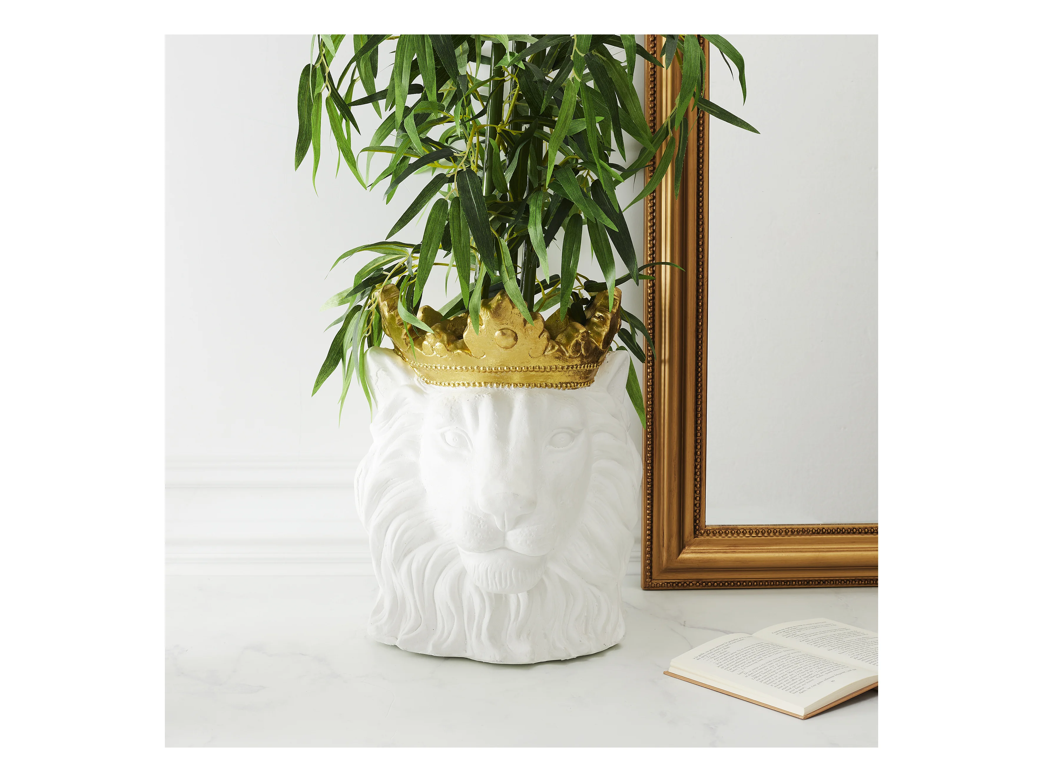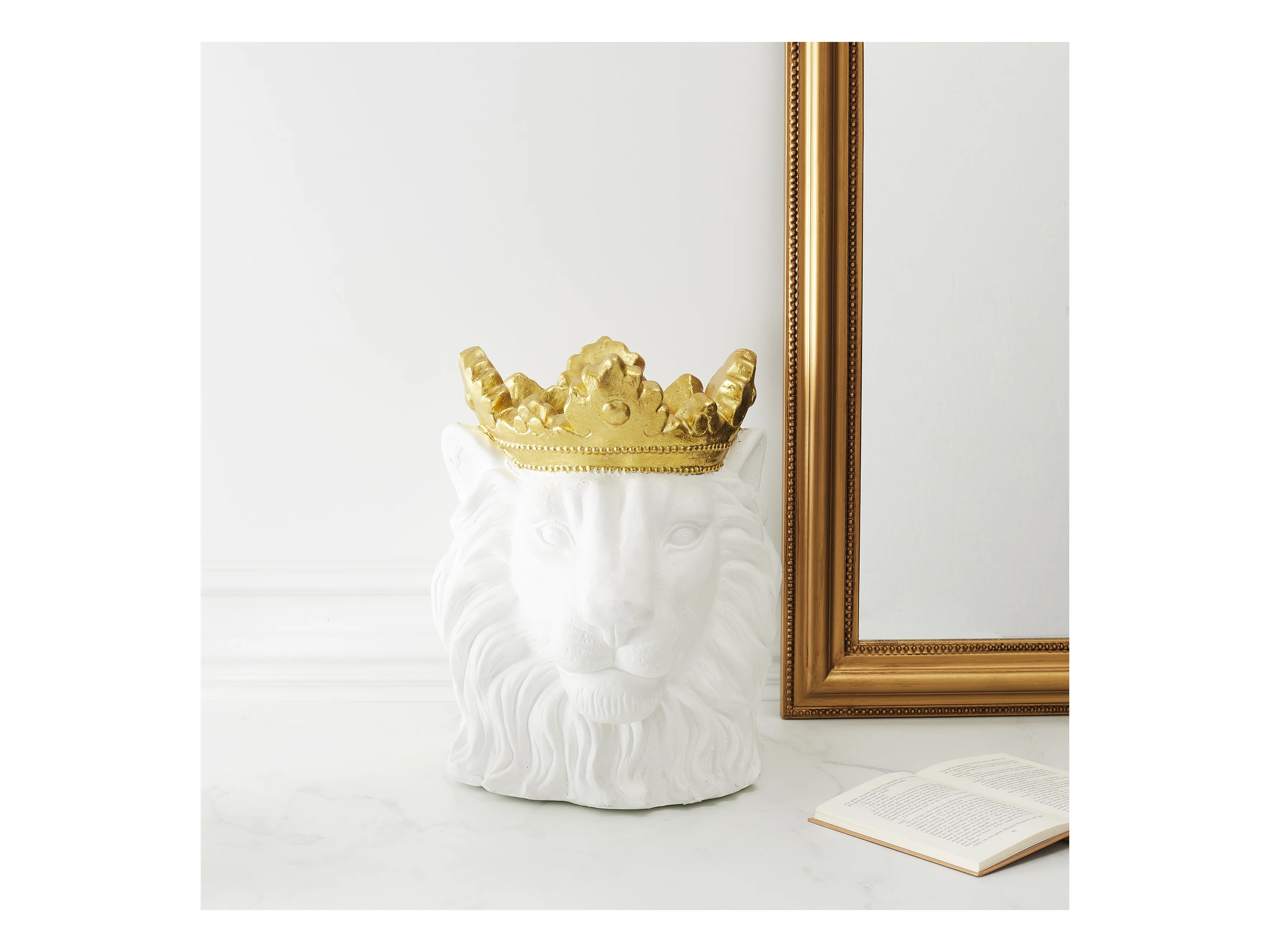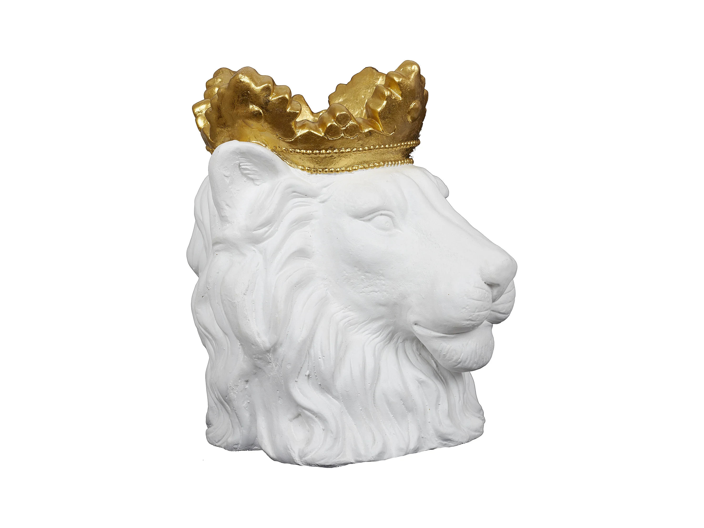 Cache Pot Lion Blanc Couronne Doree D16cm Blanc