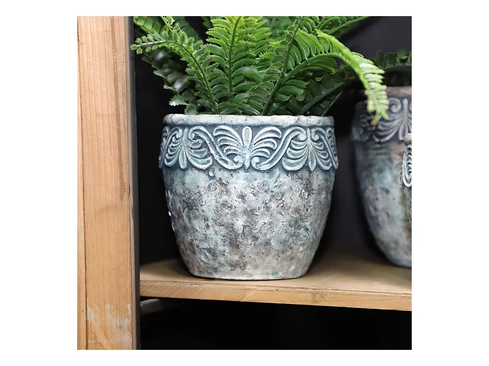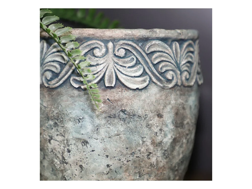 Cache-pot rond en ciment vieilli bleuté Ø.14 x Ht.13 cm