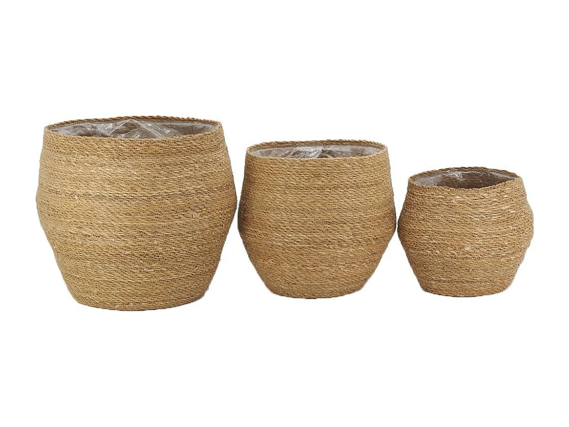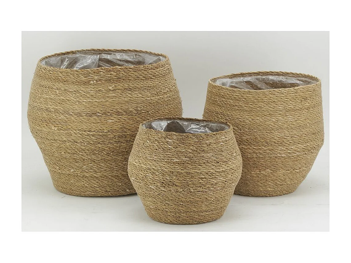 Cache-pots en jonc naturel et doublure plastique (Lot de 3)