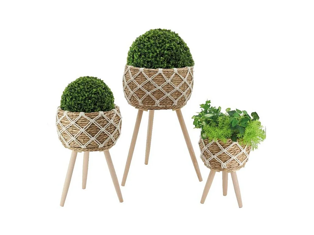 Cache-pots en jonc sur pieds (lot de 3)