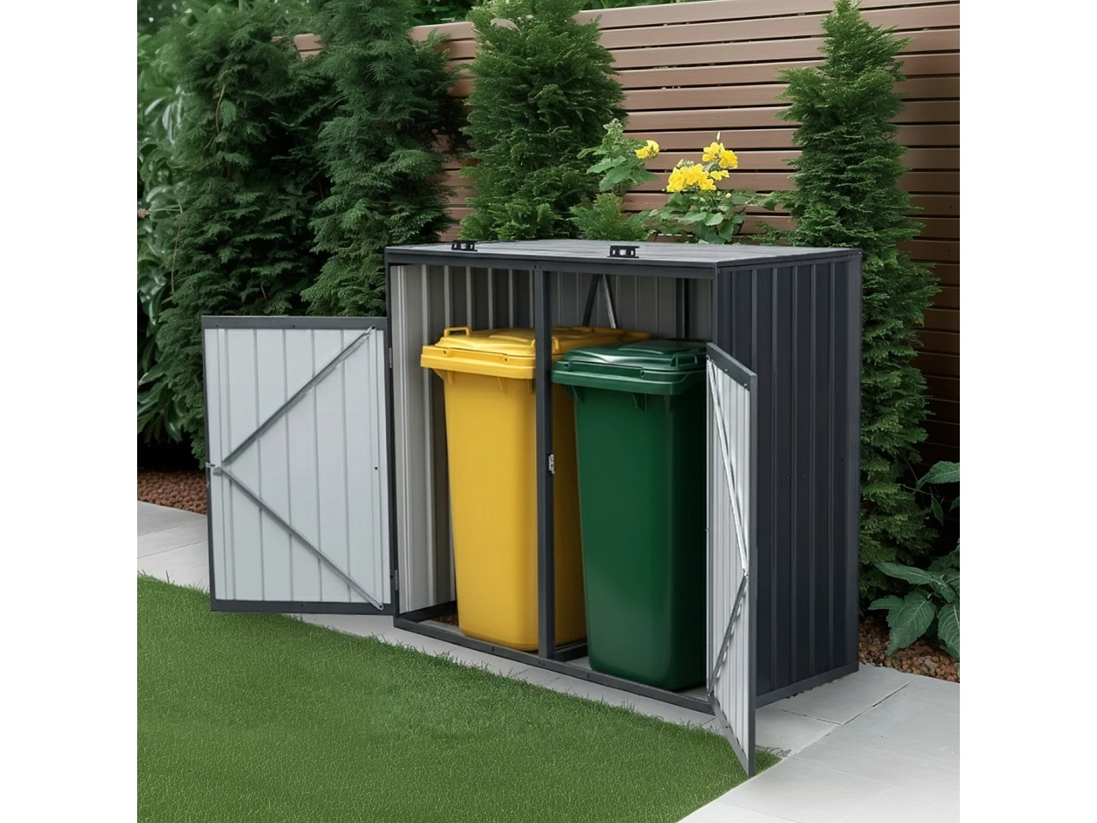 Cache Poubelle Exterieur | 160 x 80 x 122 cm | Métal (Acier galvanisé) | Couleur Anthracite | Abri Poubelle Exterieur Double