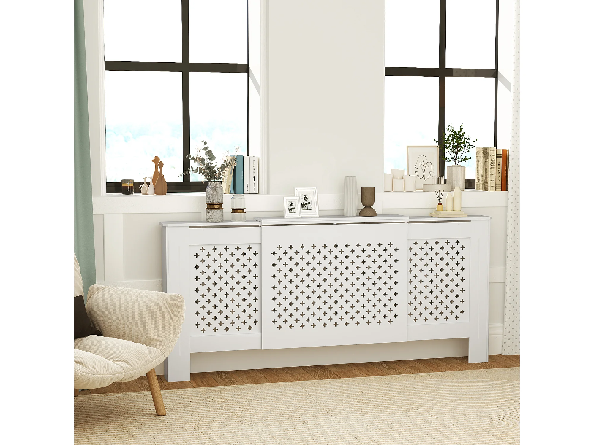 Cache-radiateur réglable motif nid d'abeille dim. 136-200L x 21,5l x 91,7H cm MDF blanc