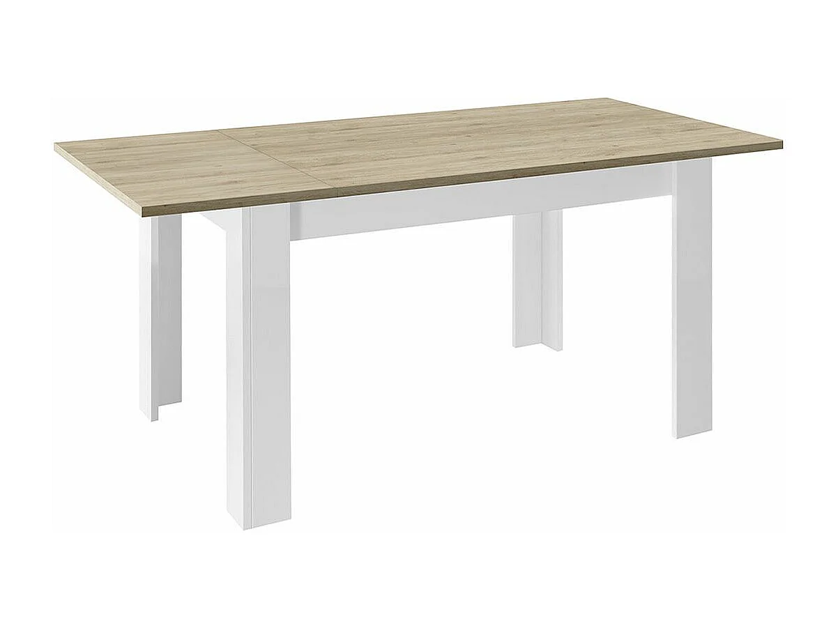 CADIZ - Table Repas Extensible Blanc Laqué Brillant Plateau Aspect Bois Cadiz