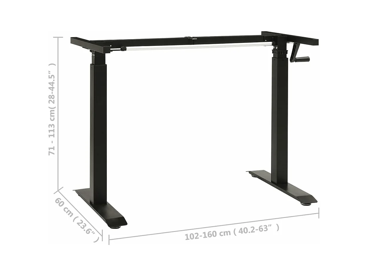 Cadre de bureau en hauteur réglable avec manivelle manuel Noir