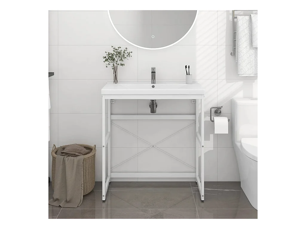 Cadre de lavabo de salle de bain Blanc 59x38x83 cm Fer