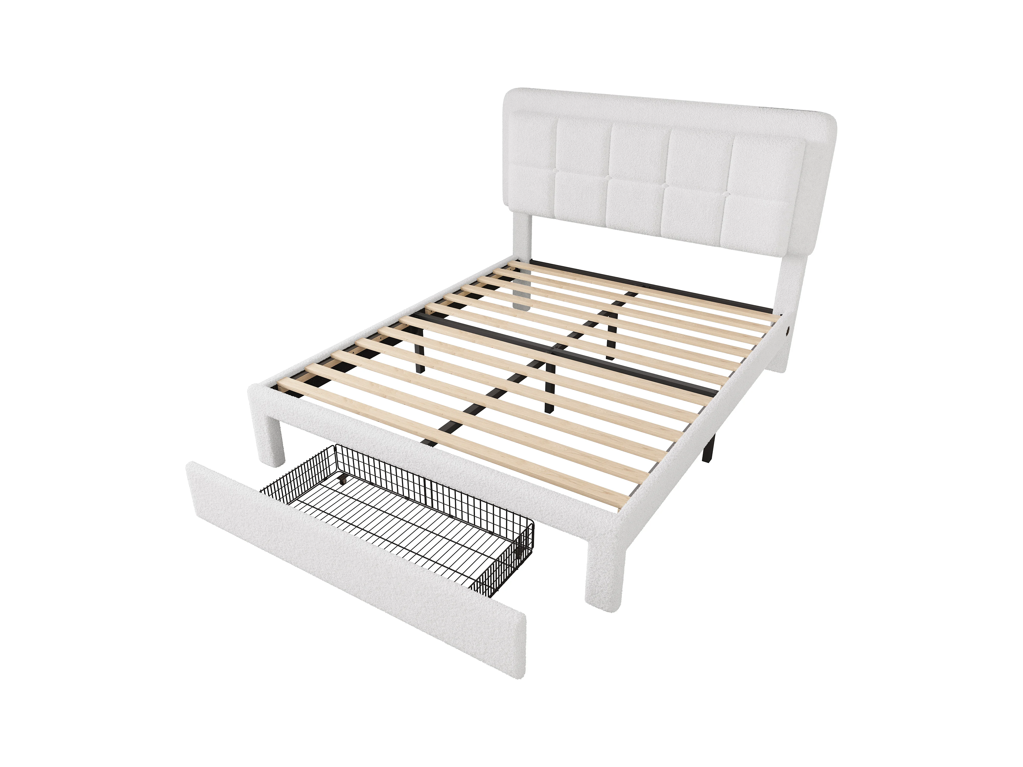 Cadre de lit 140x200cm avec tissu en velours Teddy – Cadre en acier et bois, tête de lit réglable, lumière ambiante réglable, port USB, cadre de lit moderne