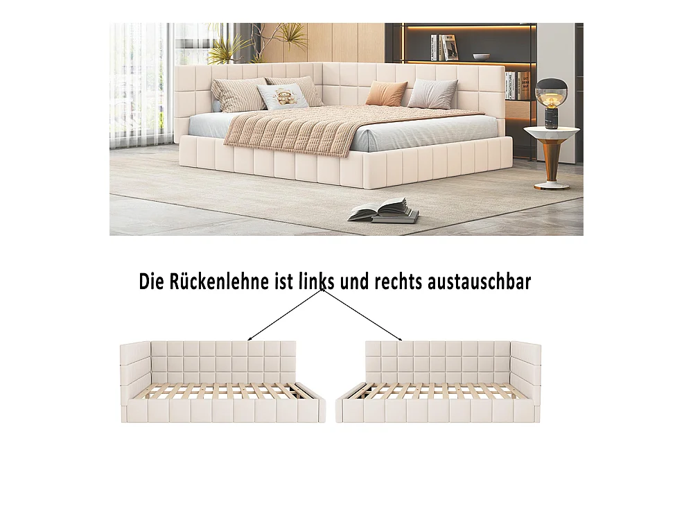 Cadre de lit 160x200 lit multifonctionnel avec sommier à lattes tissu velours Beige