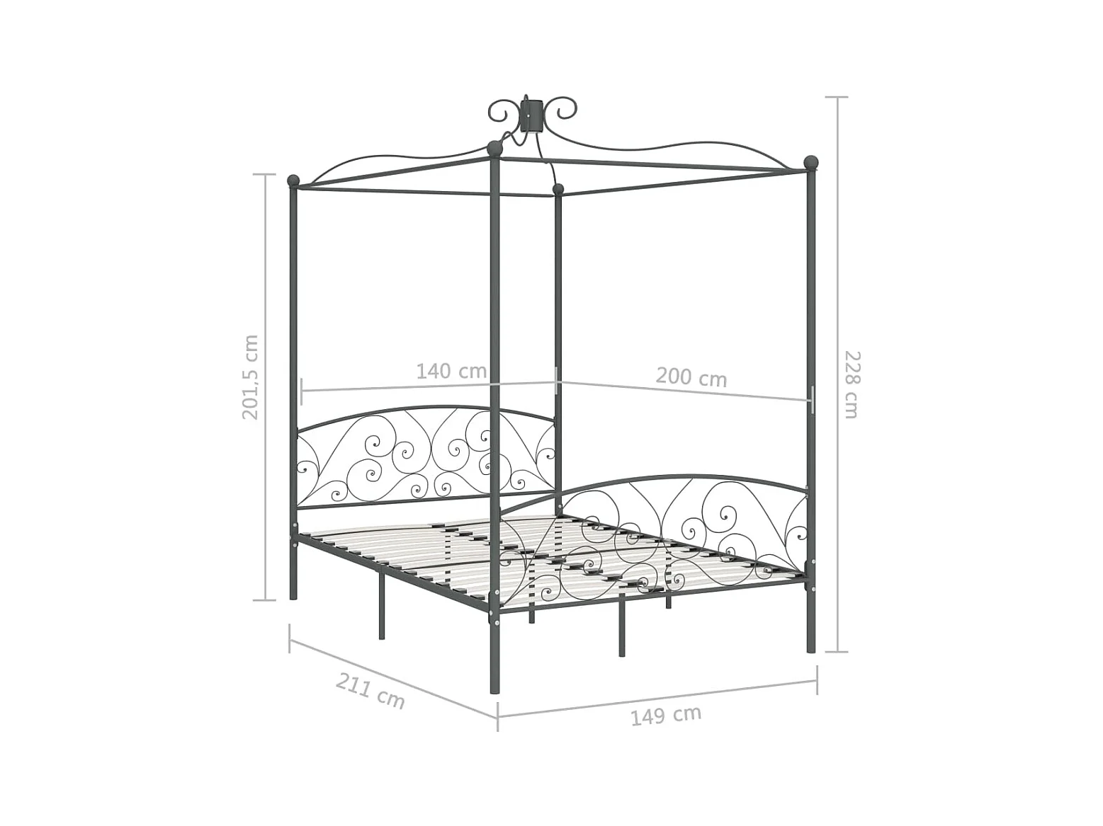 Cadre de lit à baldaquin Gris Métal 140 x 200 cm