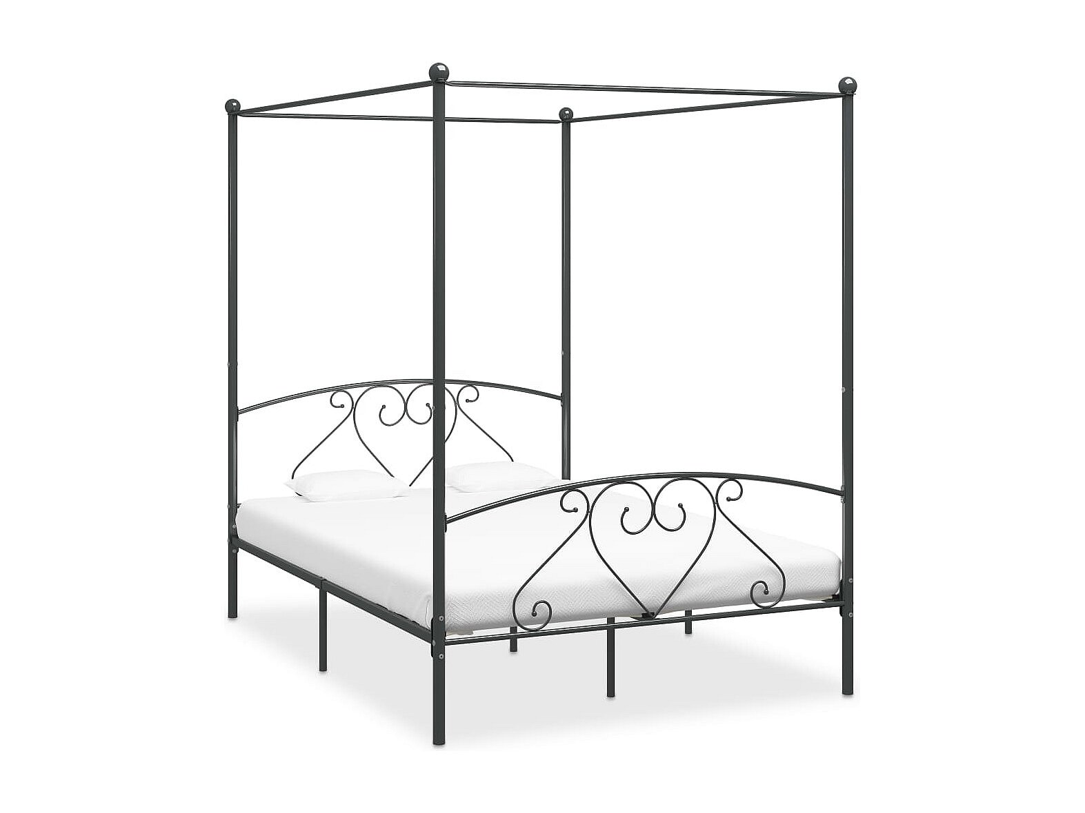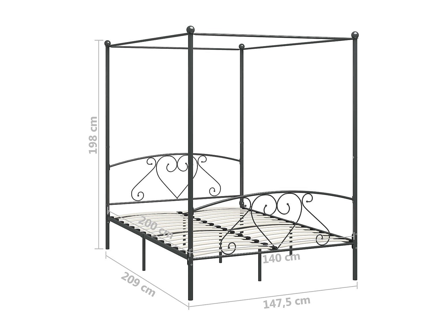Cadre de lit à baldaquin sans matelas gris métal 140x200 cm