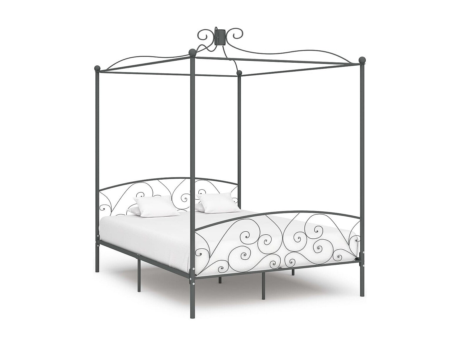 Cadre de lit à baldaquin sans matelas gris métal 160x200 cm