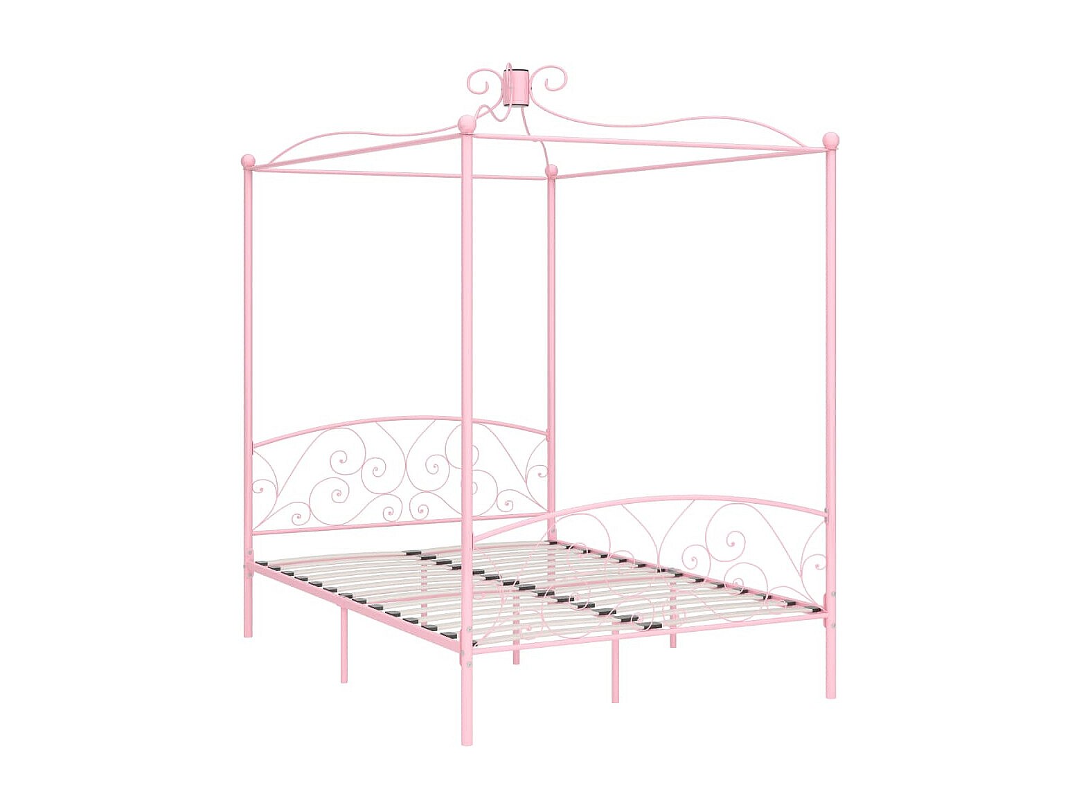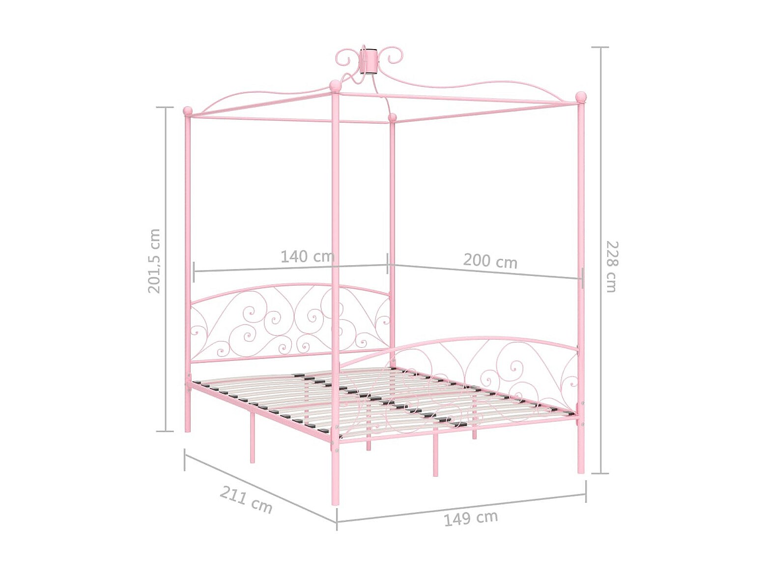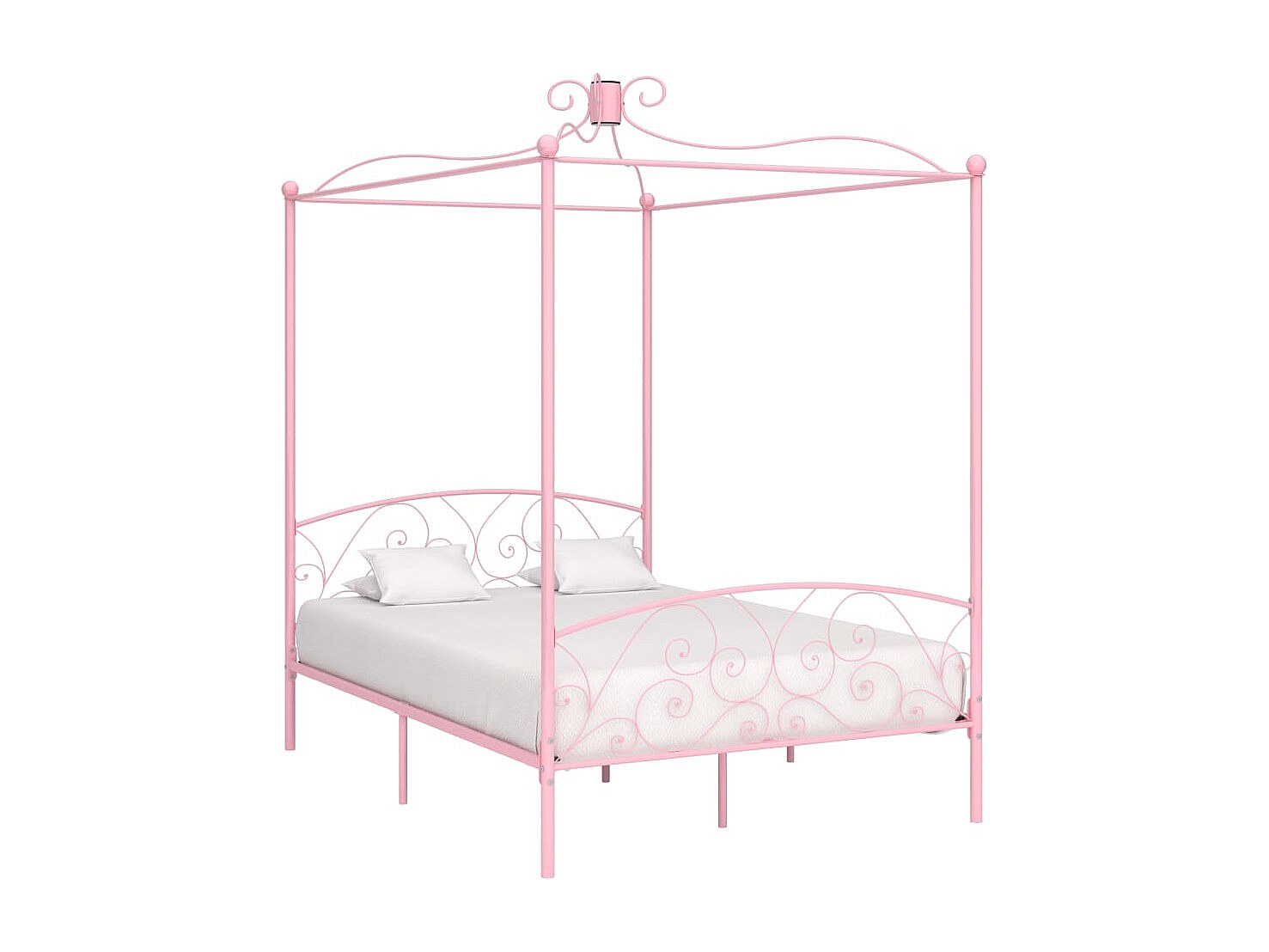 Cadre de lit à baldaquin sans matelas rose métal 140x200 cm
