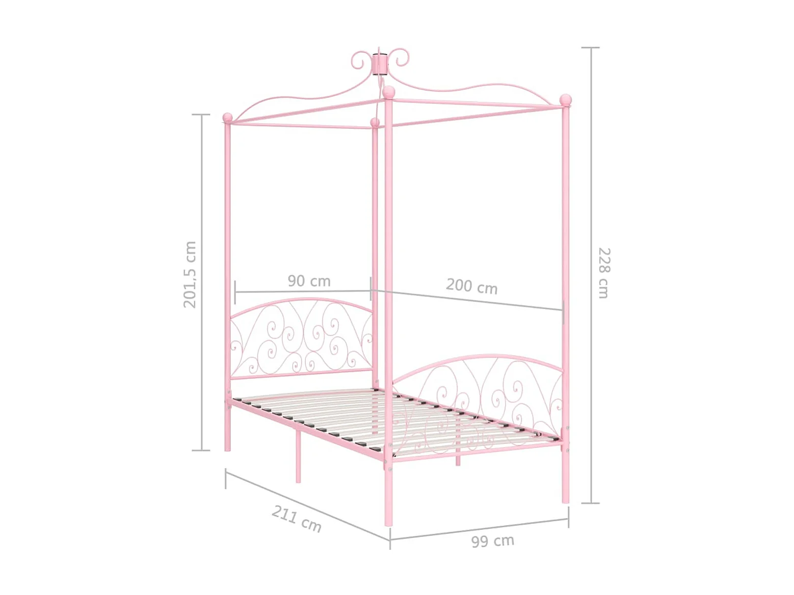 Cadre de lit à baldaquin sans matelas rose métal 90x200 cm