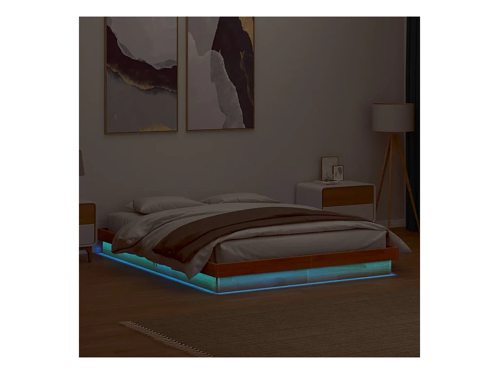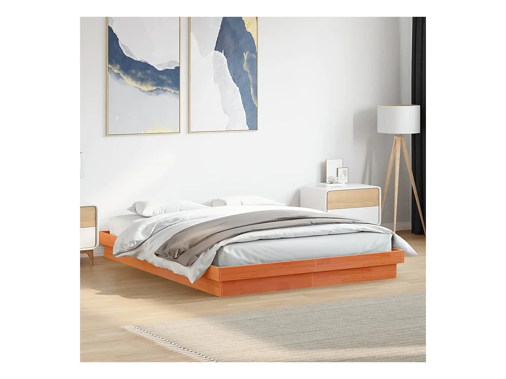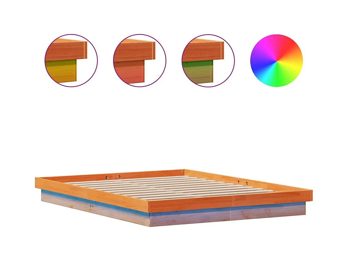 Cadre de lit à LED marron 150x200 bois de pin massif