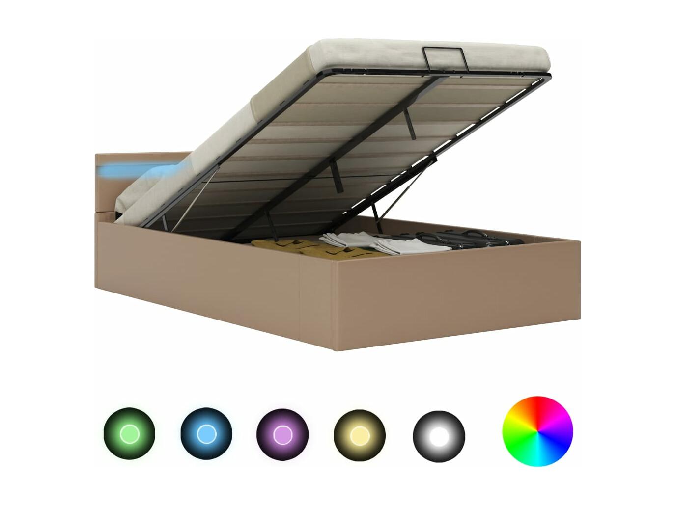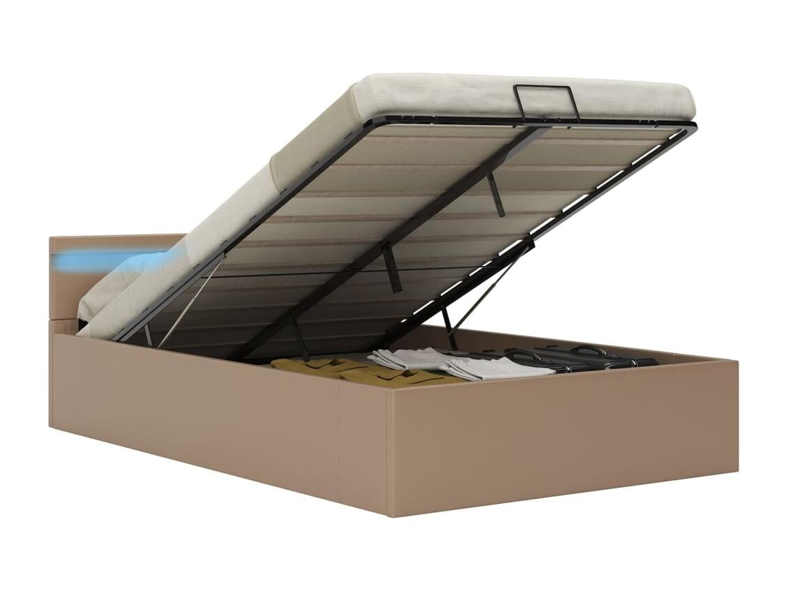Cadre de lit à rangement et LED Cappuccino Similicuir 120x200cm
