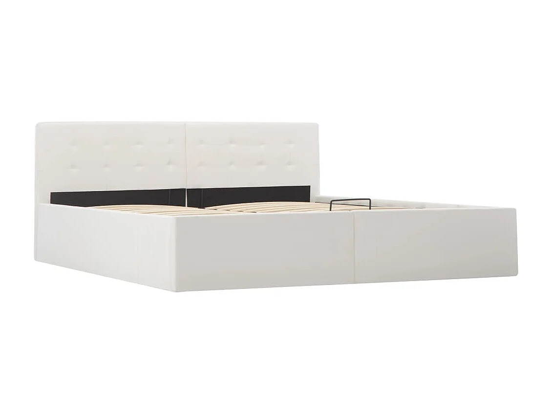 Cadre de lit à rangement hydraulique Blanc Similicuir 160x200cm