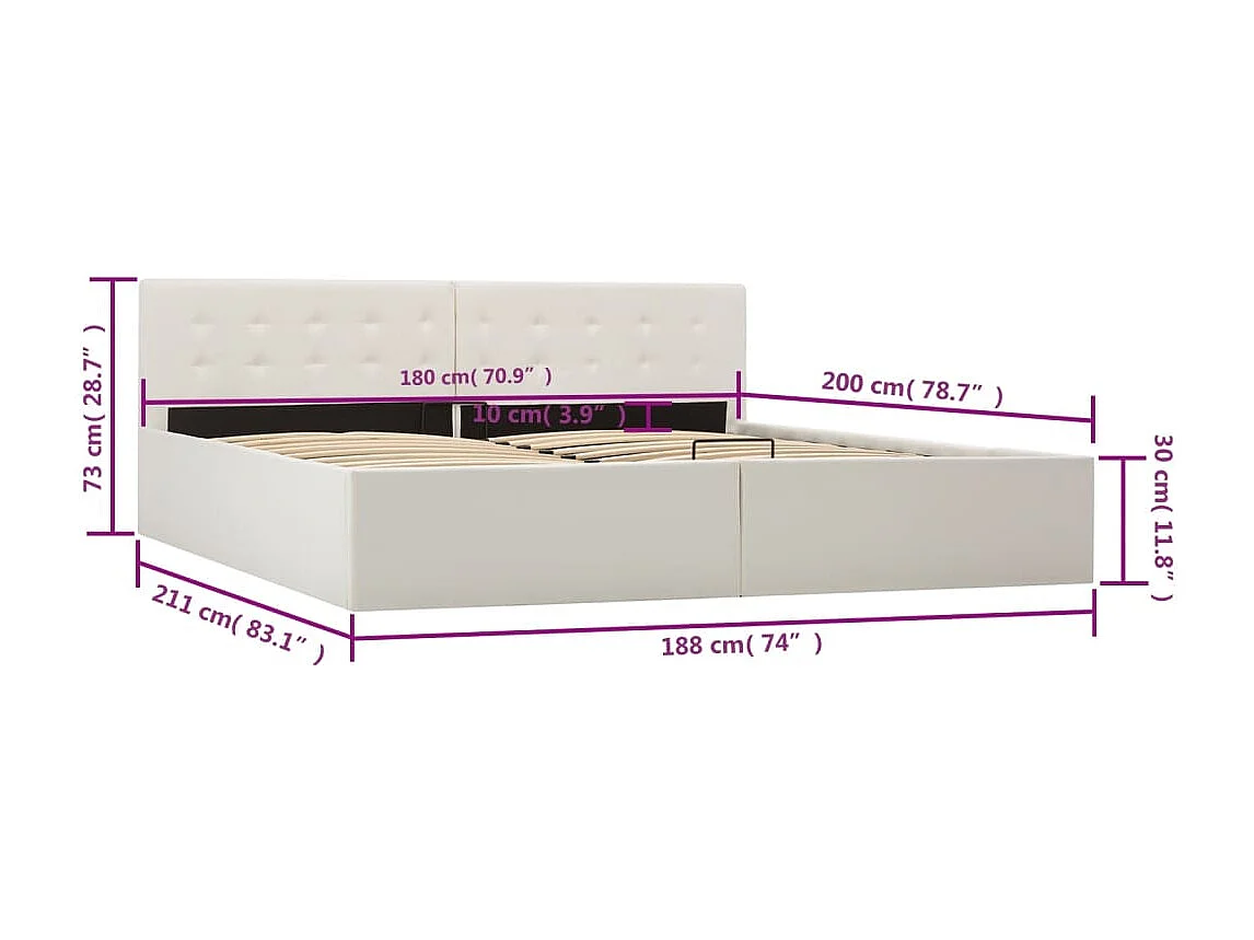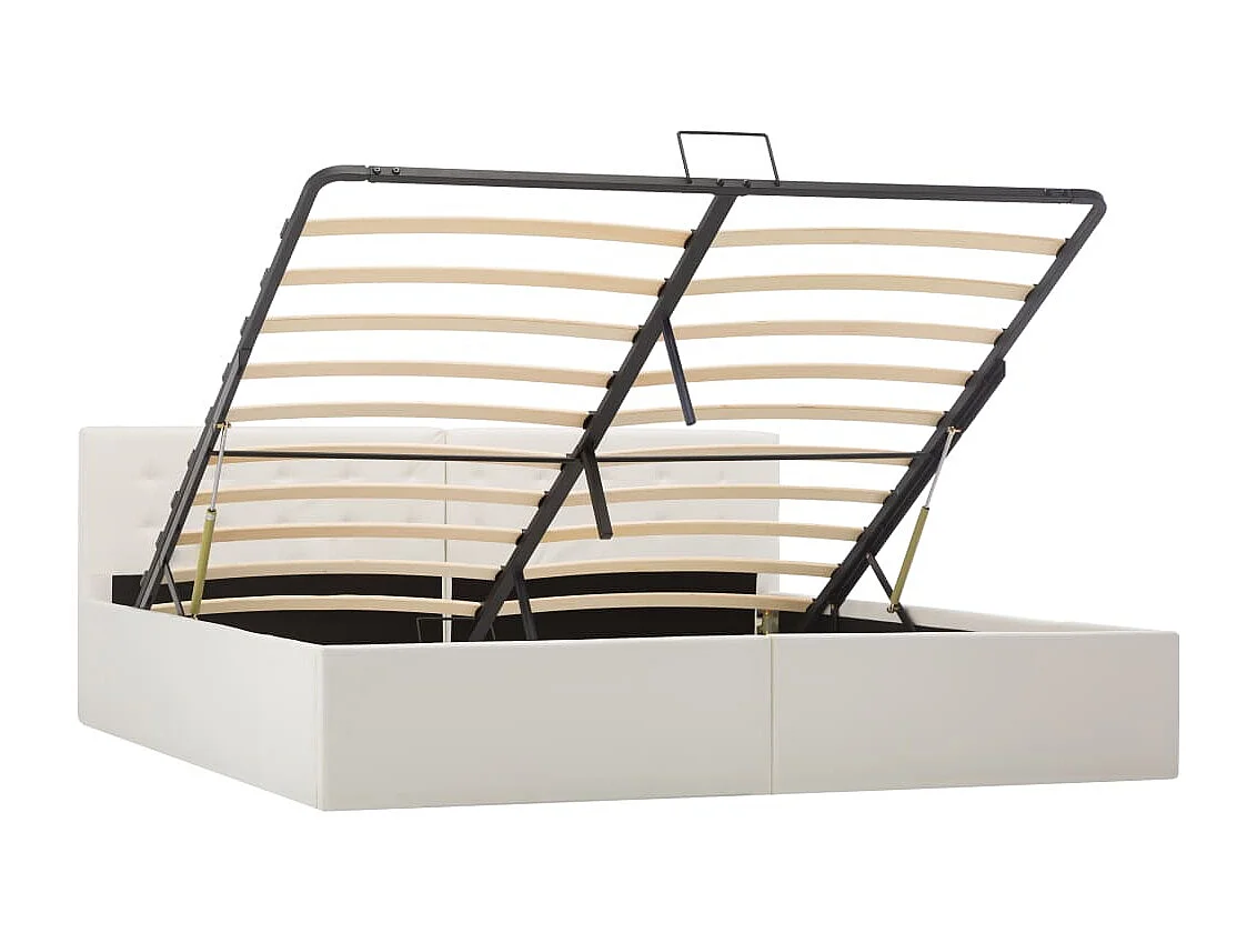Cadre de lit à rangement hydraulique Blanc Similicuir 180x200cm