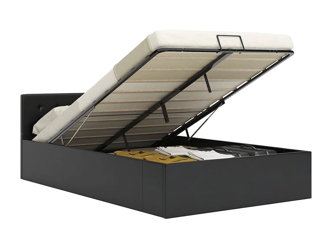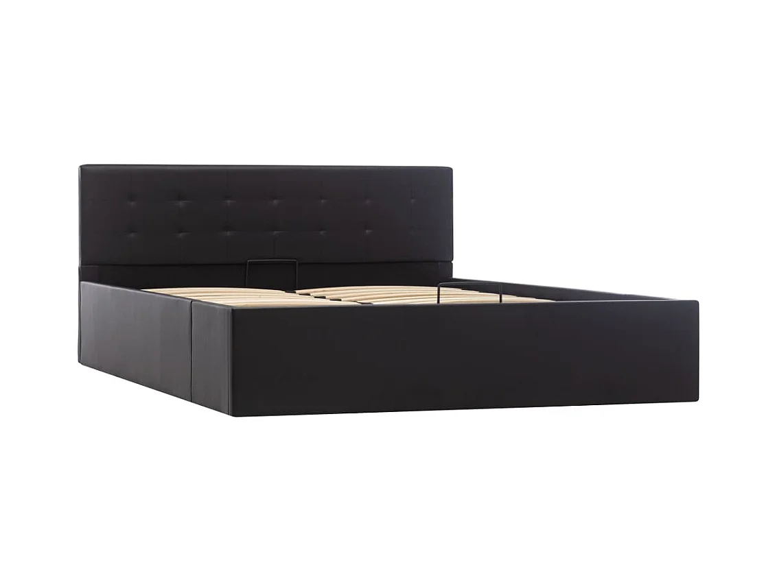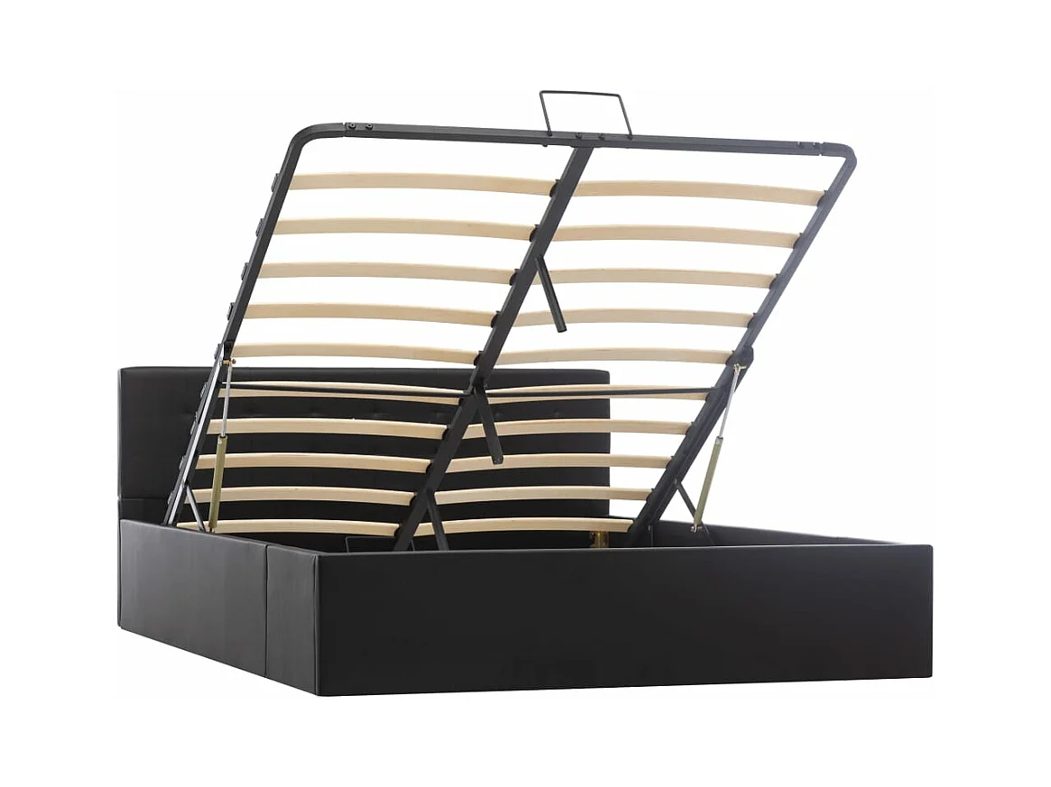 Cadre de lit à rangement hydraulique Noir Similicuir 140x200 cm