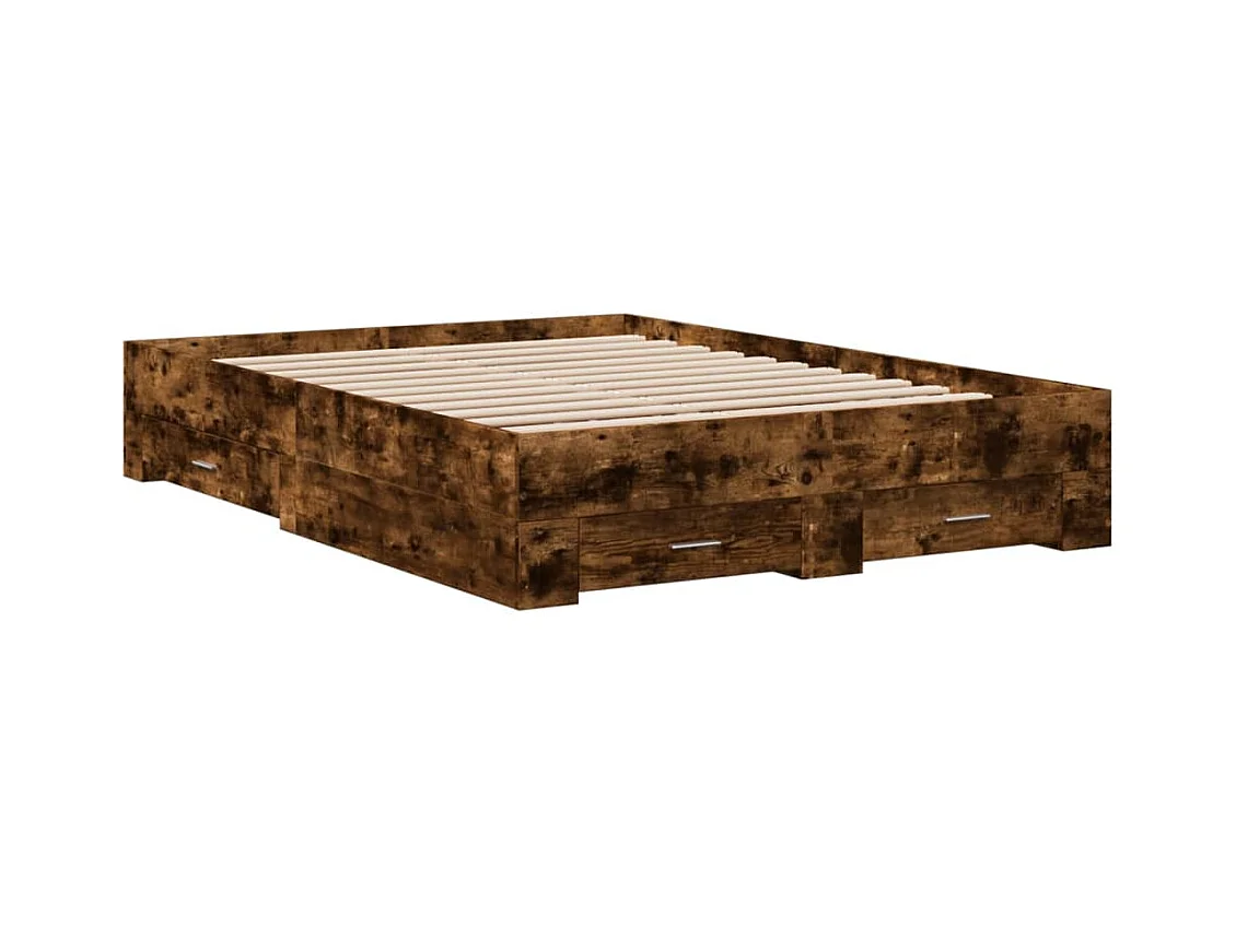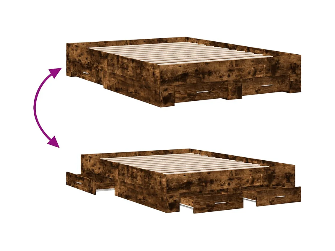 Cadre de lit à tiroirs chêne fumé 135x190 bois d'ingénierie