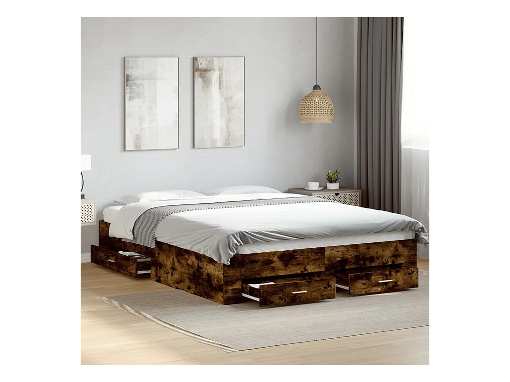 Cadre de lit à tiroirs chêne fumé 140x200 cm bois d'ingénierie