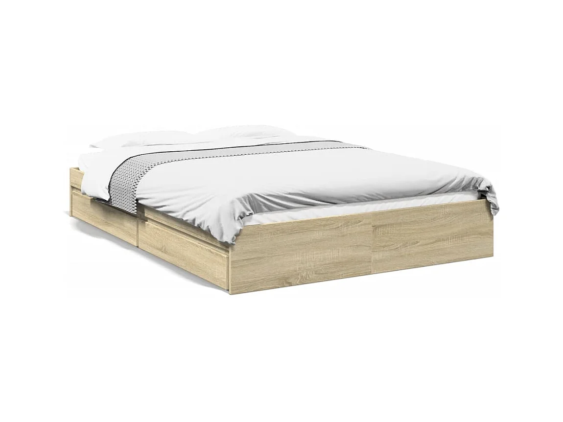 Cadre de lit à tiroirs chêne sonoma 160x200cm bois d'ingénierie