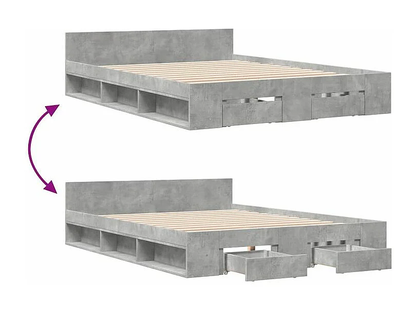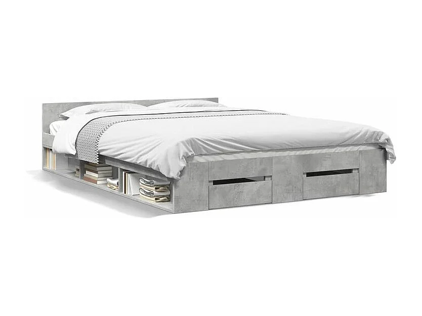 Cadre de lit à tiroirs gris béton 160x200 bois d'ingénierie