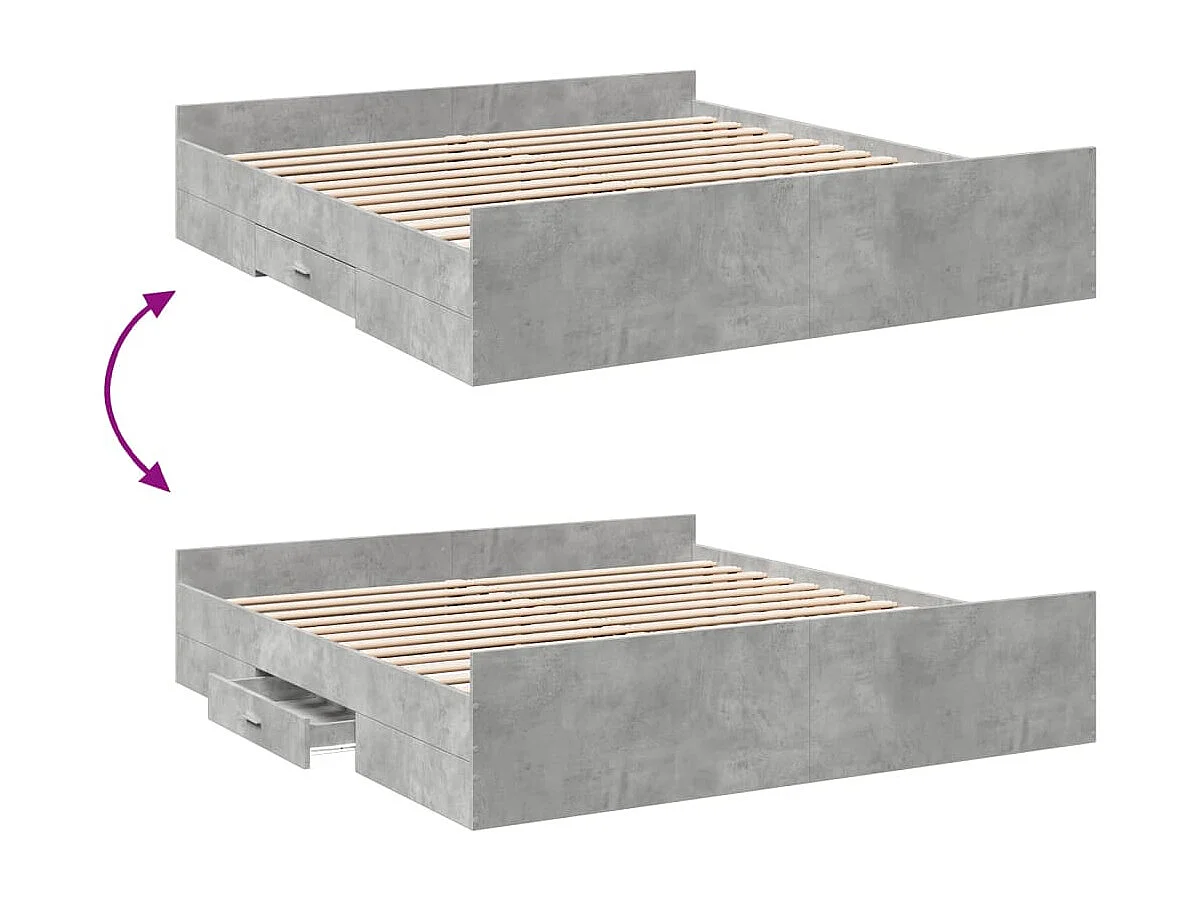Cadre de lit à tiroirs gris béton 180x200 bois d'ingénierie