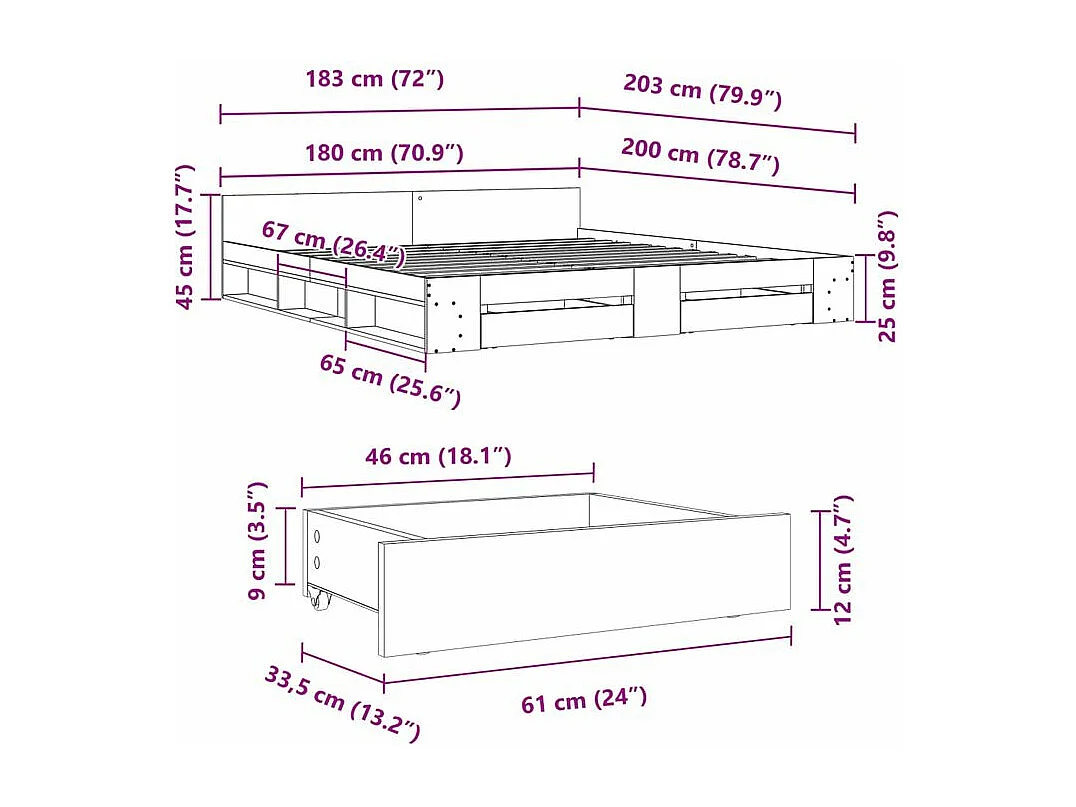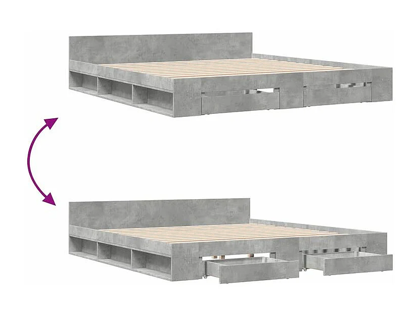Cadre de lit à tiroirs gris béton 180x200 bois d'ingénierie