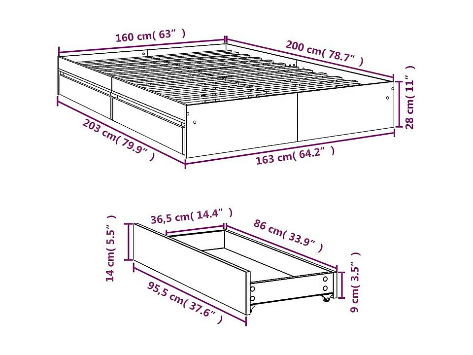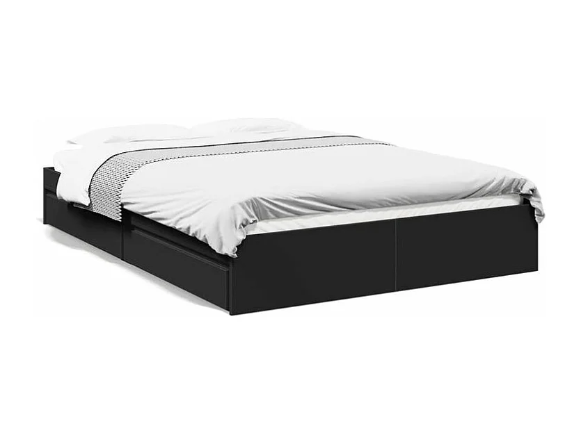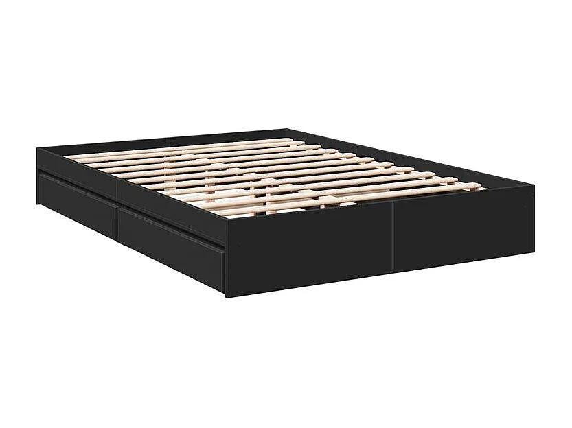 Cadre de lit à tiroirs noir 160x200 bois d'ingénierie