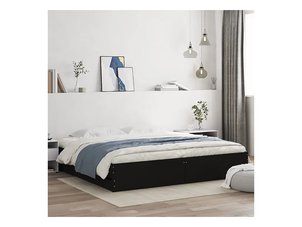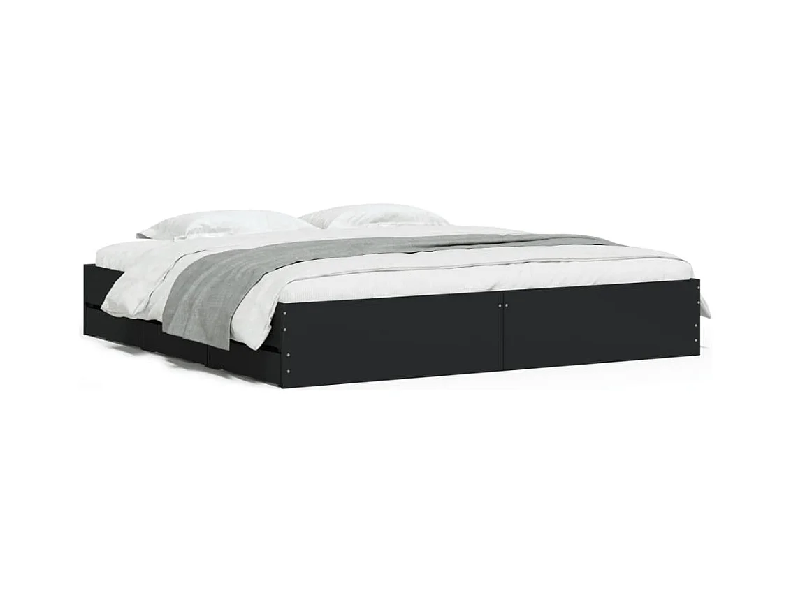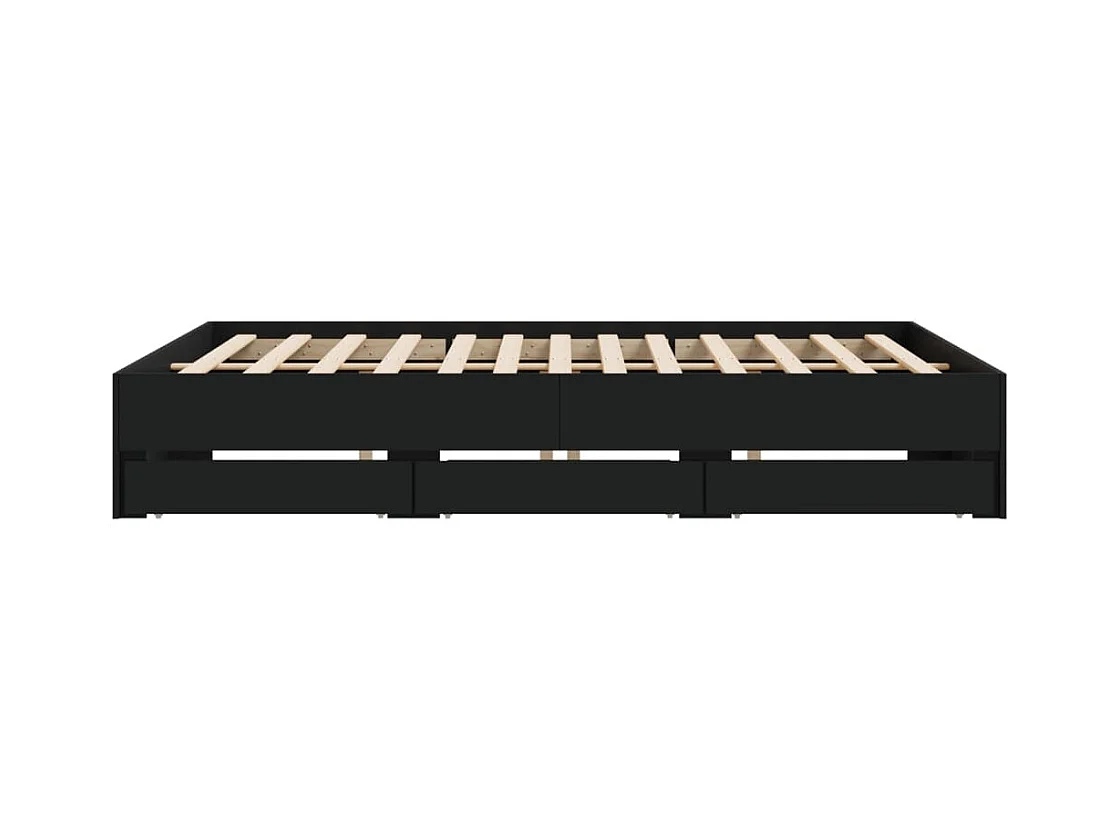 Cadre de lit à tiroirs noir 160x200 cm bois d'ingénierie