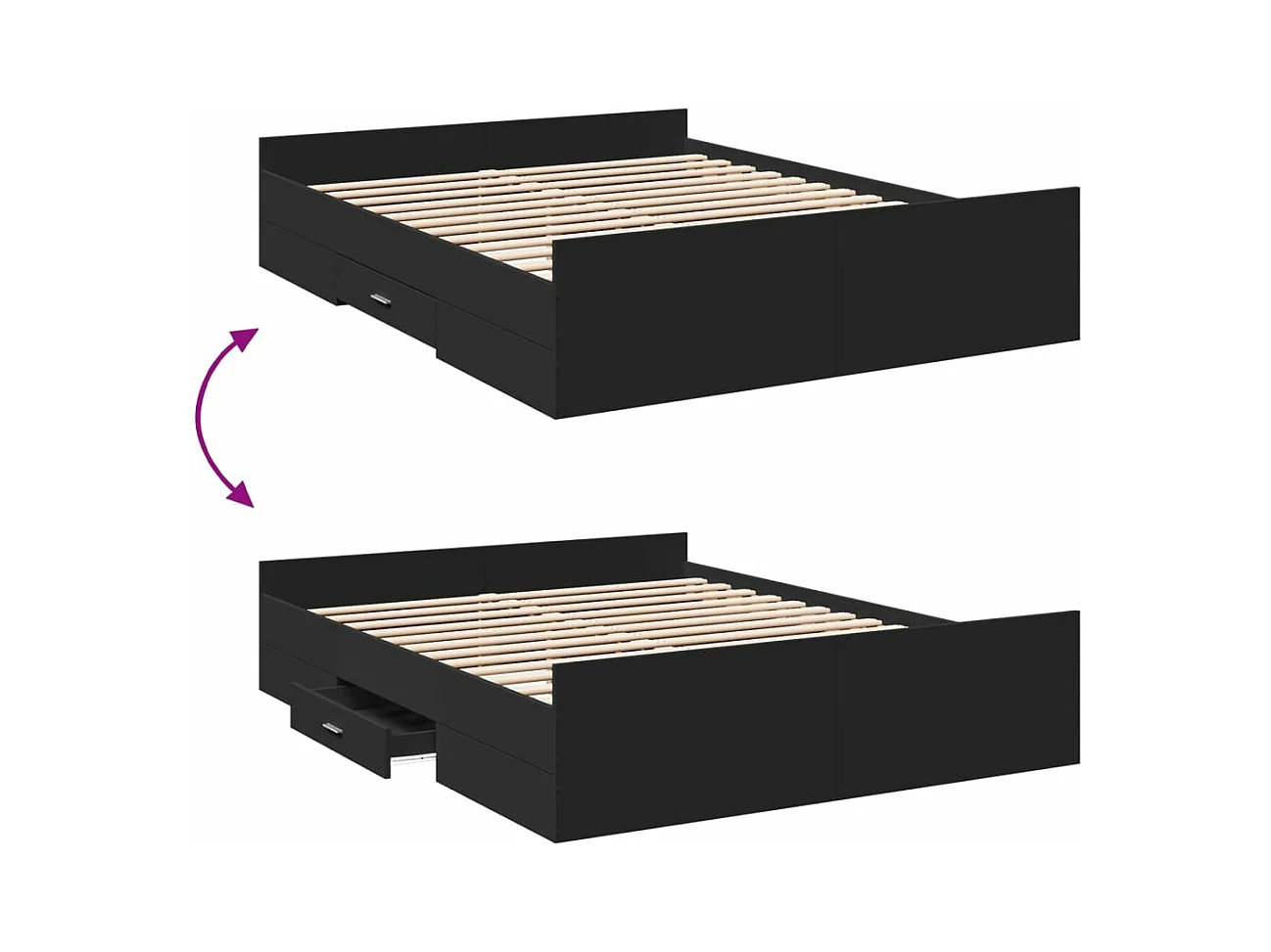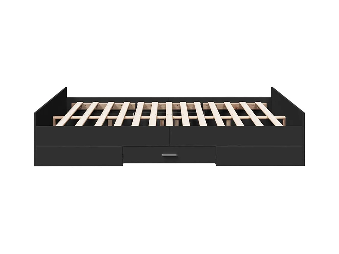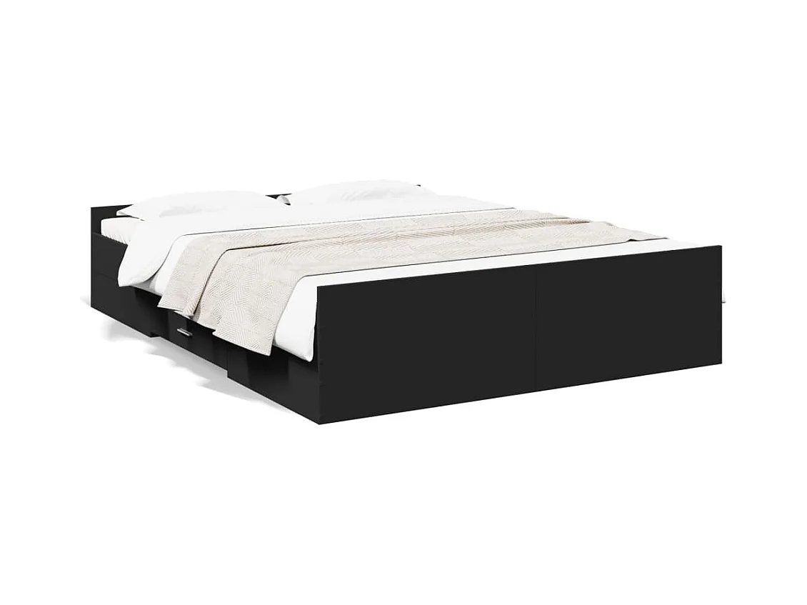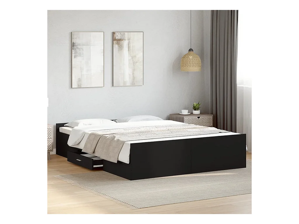 Cadre de lit à tiroirs noir 160x200 cm bois d'ingénierie