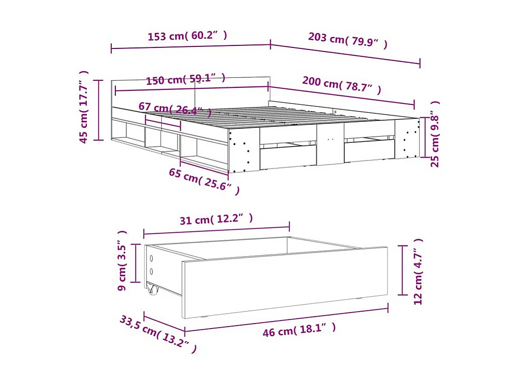 Cadre de lit à tiroirs sonoma gris 150x200 bois d'ingénierie