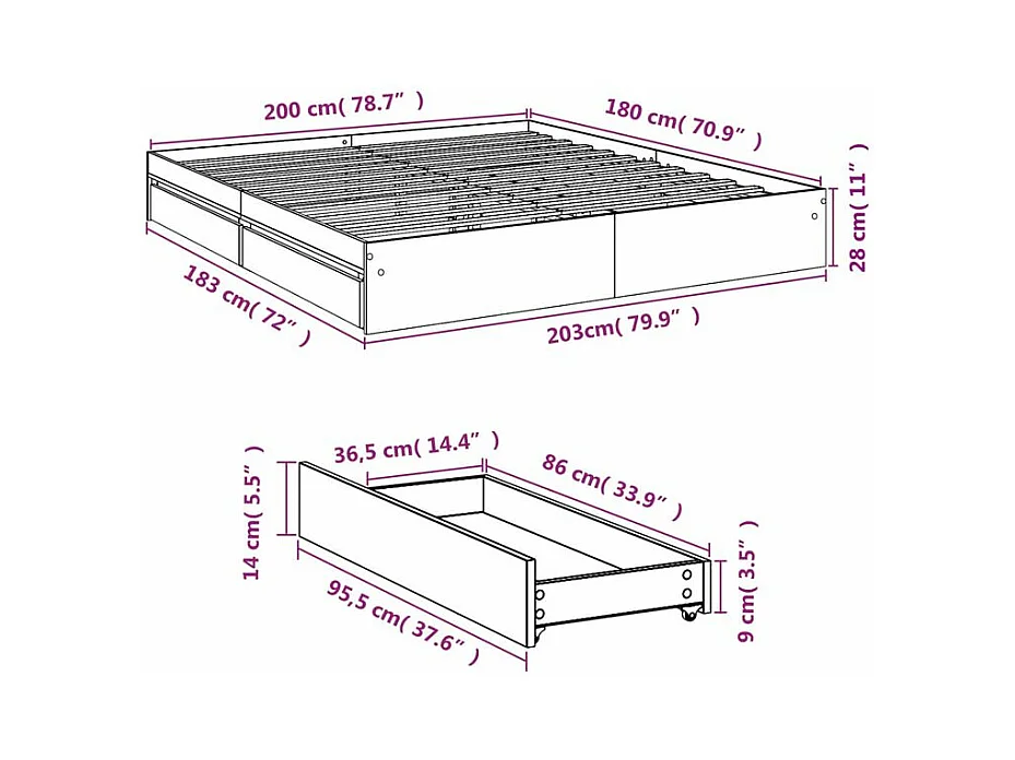 Cadre de lit à tiroirs sonoma gris 180x200 bois d'ingénierie