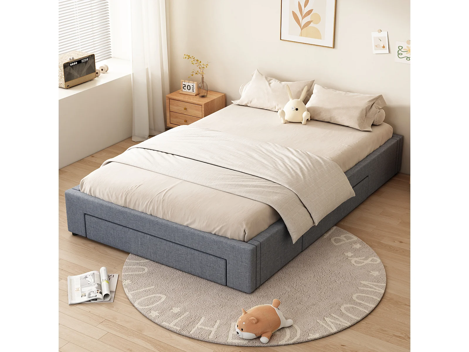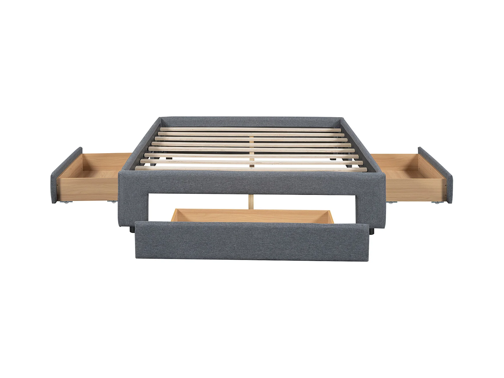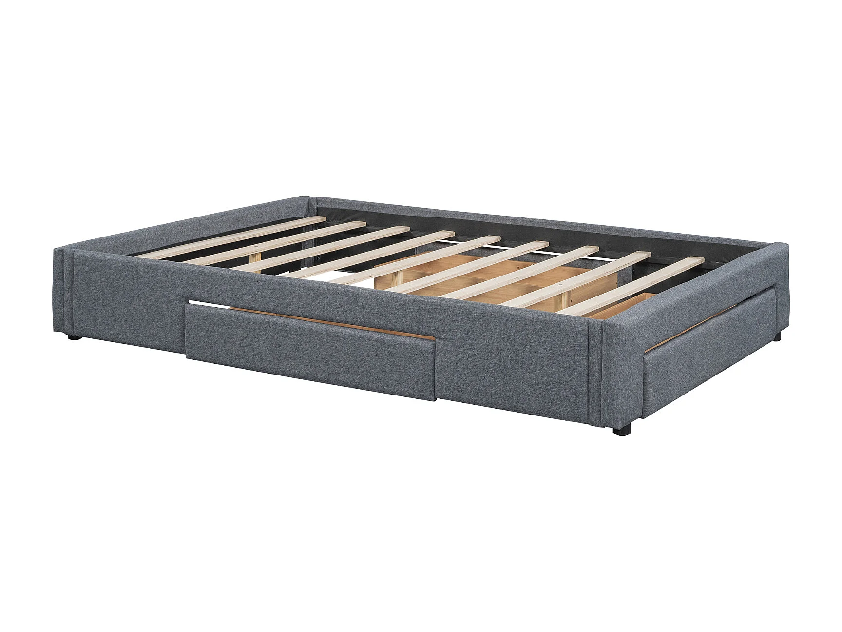 Cadre de lit avec 3 tiroirs, avec sommier à lattes, sans tête de lit, gris 140x200cm