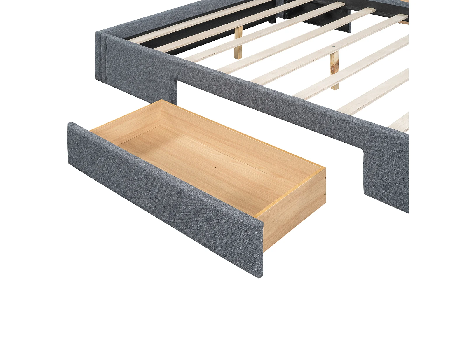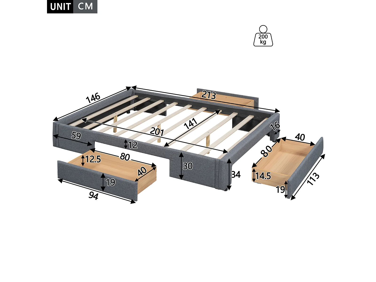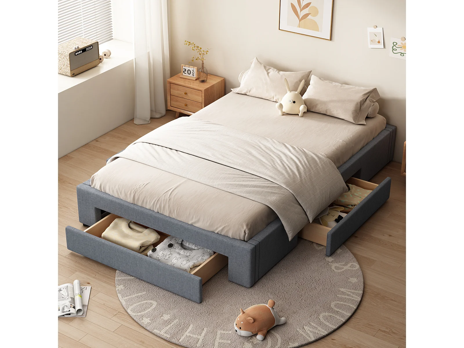 Cadre de lit avec 3 tiroirs, avec sommier à lattes, sans tête de lit, gris 140x200cm