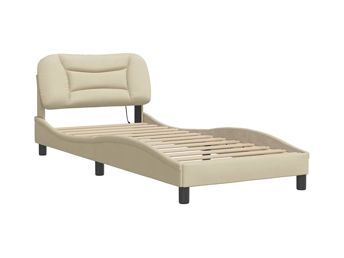 Cadre de lit avec LED sans matelas crème 90x200 cm tissu