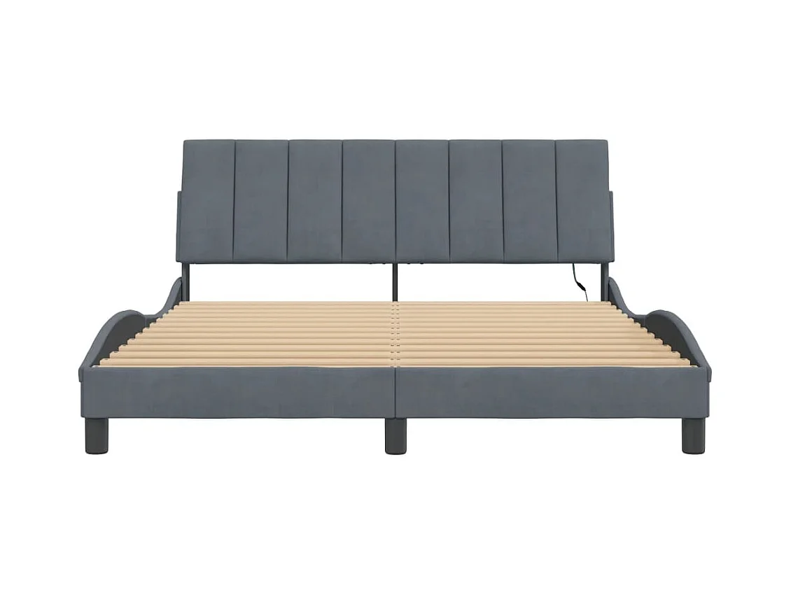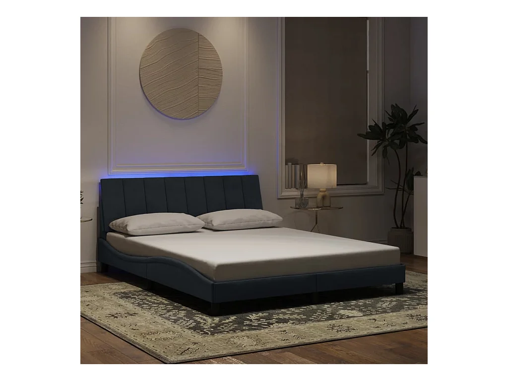 Cadre de lit avec LED sans matelas gris foncé 160x200cm velours