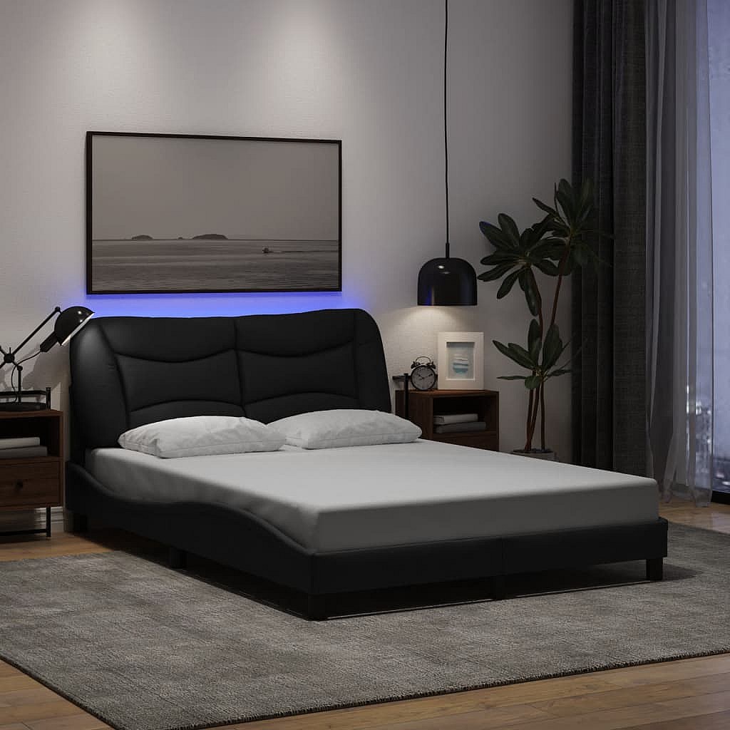 Cadre de lit avec LED sans matelas noir 140x190 cm tissu