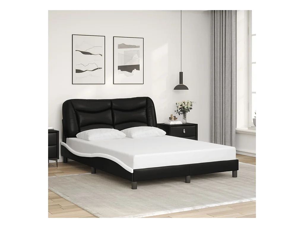 Cadre de lit avec LED sans matelas noir et blanc 140x200 cm