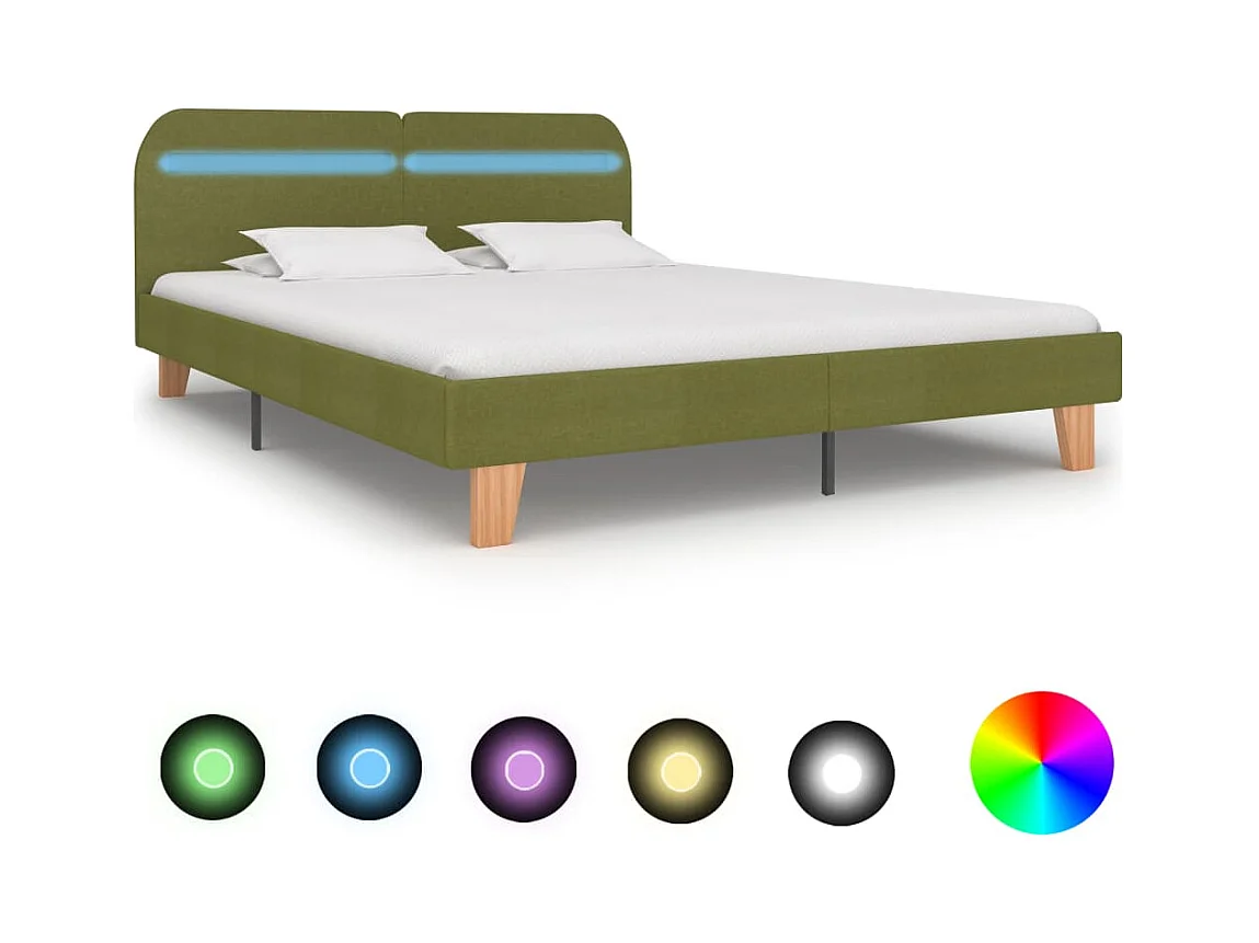 Cadre de lit avec LED Vert Tissu 160 x 200 cm